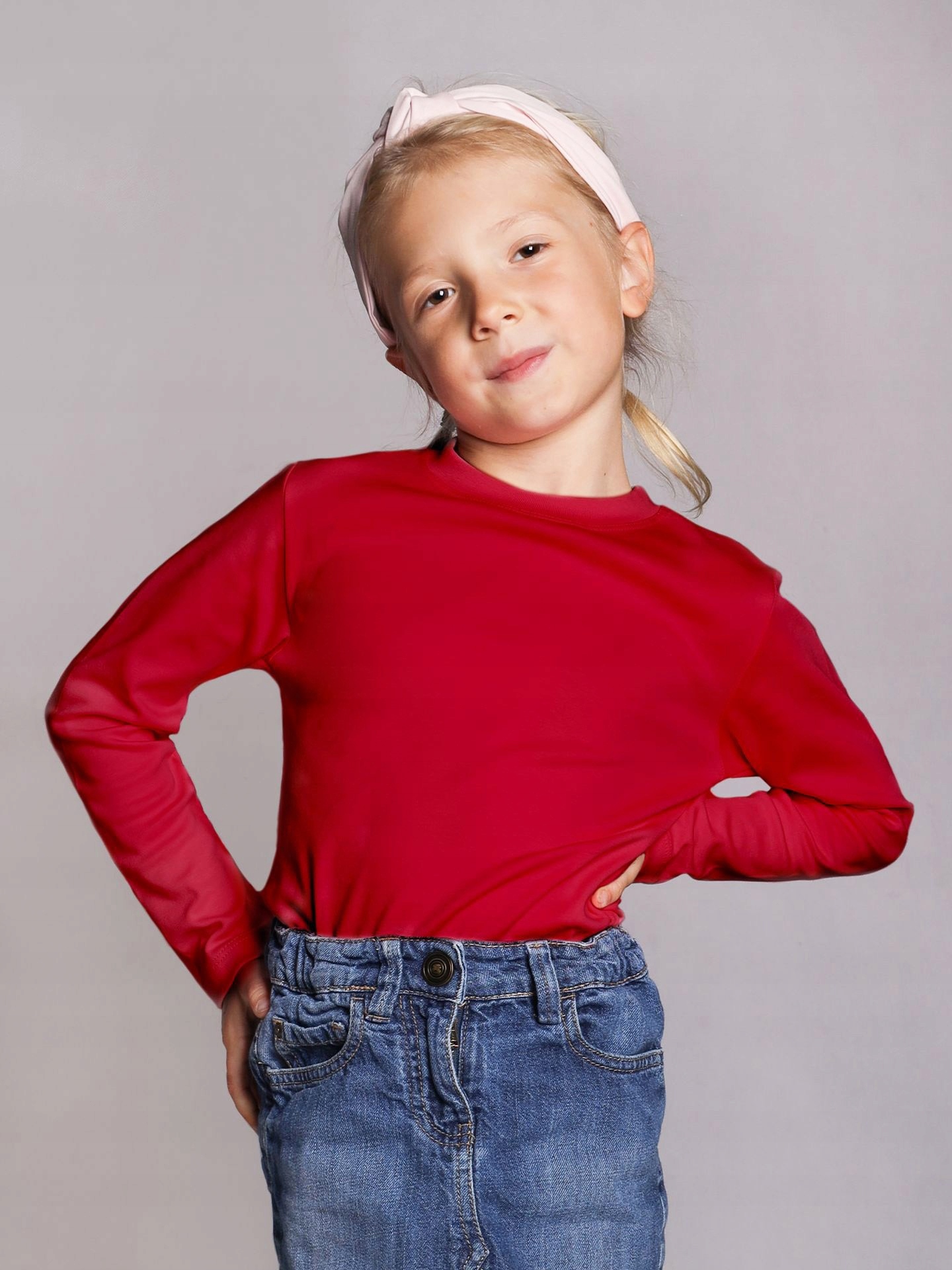 Dziewczęca bluzka w kolorze różowym. Posiada klasyczny, okrągły dekolt oraz długie rękawki. Delikatne taliowanie sprawia, że zgrabnie leży na dziecku, jednocześnie go nie opinając.