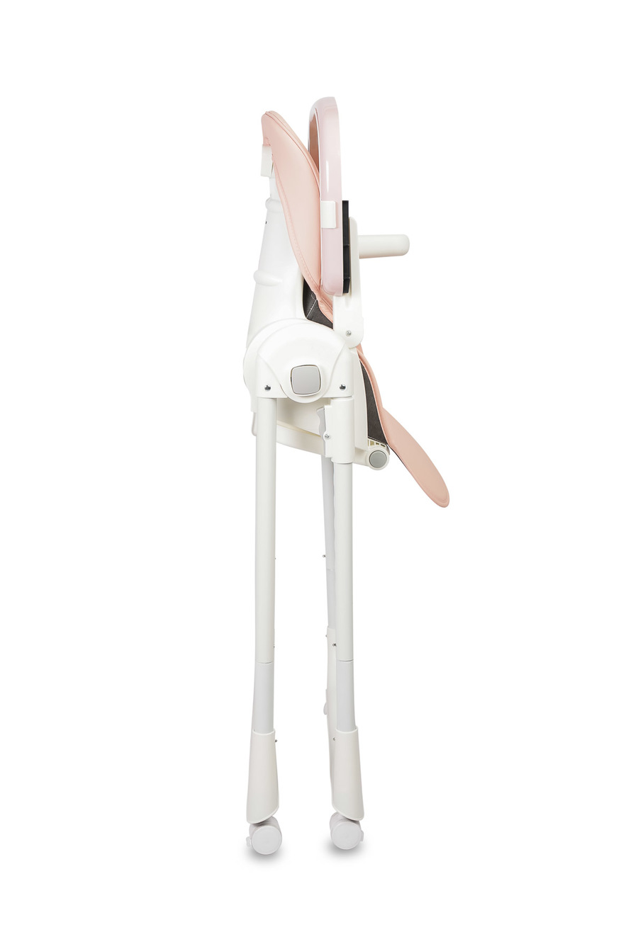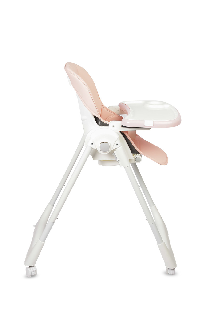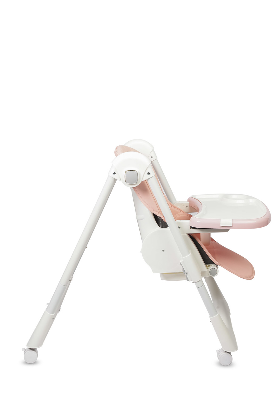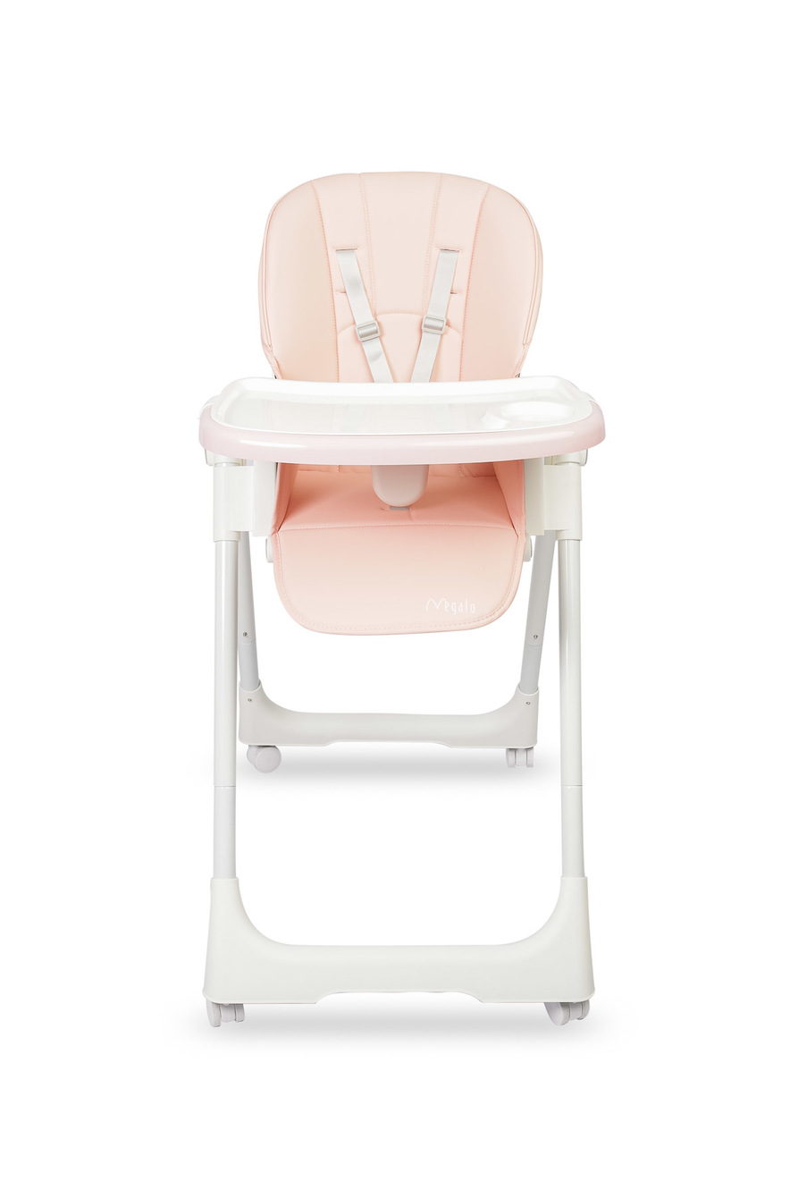 Składane krzesełko do karmienia Megalo jest lekkie i komfortowe. Niewielka waga i wygoda dzięki możliwości złożenia do niewielkich rozmiarów to mocne strony produktu. Obszerne siedzisko z regulowaną tacką i pasami bezpieczeństwa sprawiają, że maluszek będzie mógł komfortowo zjeść posiłek. Siedzisko jest wyłożone tapicerką z ekoskóry, którą łatwo zdjąć i wyczyścić. Regulowana wysokość krzesełka umożliwia wybór optymalnego ustawienia w zależności od potrzeb. Megalo posiada gumowane kółka z blokadą, dzięki którym łatwo się go przesuwa, nie niszcząc podłogi.