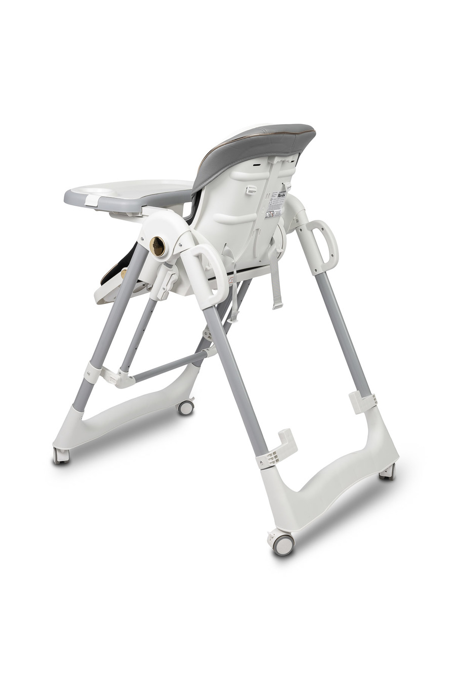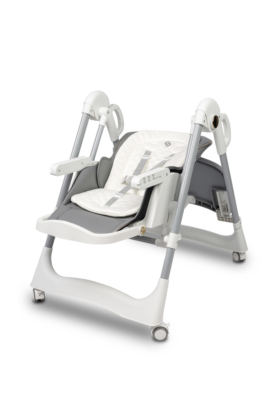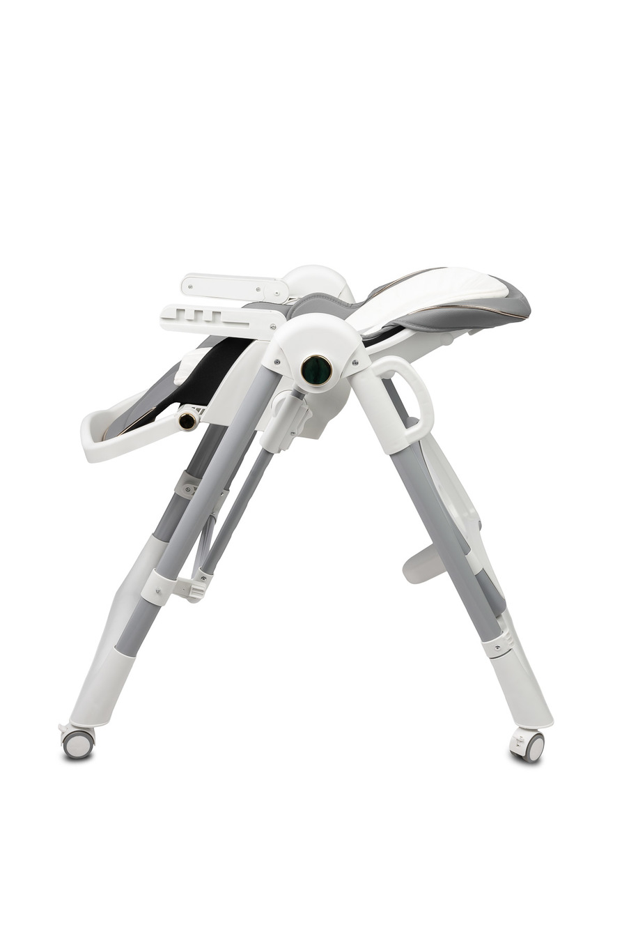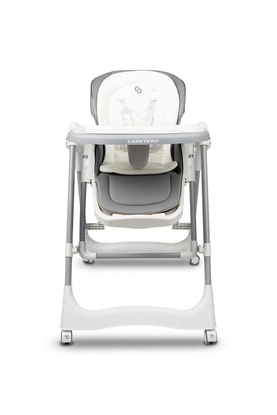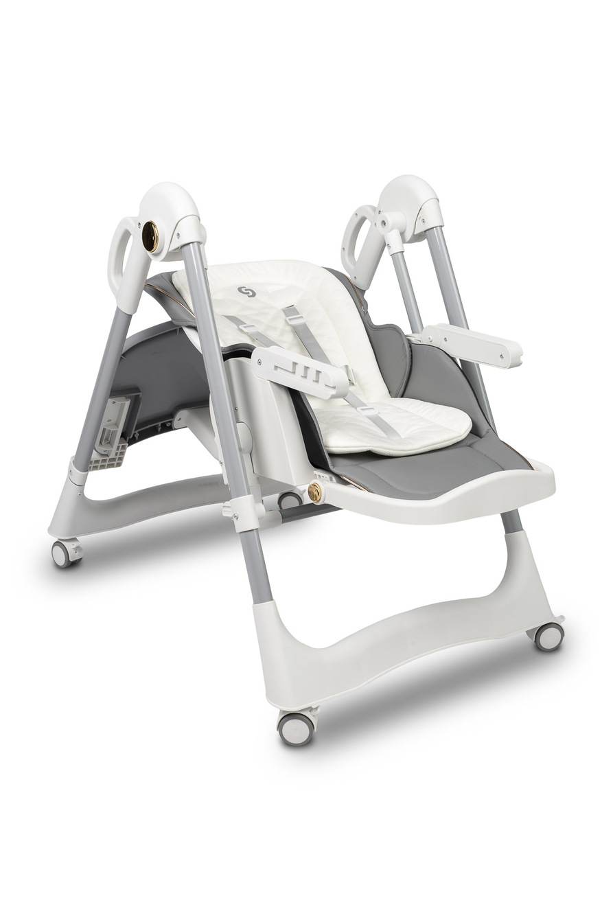 Krzesełko zostało wyposażone w 5-stopniową regulację wysokości, co umożliwia łatwe dopasowanie go do każdego stołu. Dodatkowo tacka odchyla się w 3 pozycjach względem siedziska, co znacząco zwiększa komfort dziecka podczas karmienia.