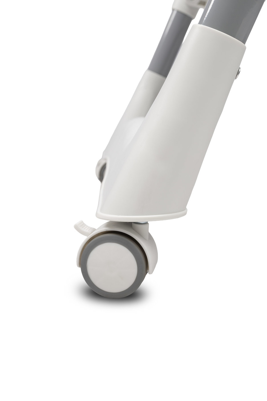 Krzesełko zostało wyposażone w 5-punktowe pasy bezpieczeństwa, które skutecznie zabezpieczają dziecko podczas każdego posiłku. Kółka z blokadą umożliwiają łatwe przestawianie krzesełka, a po zatrzymaniu – solidne unieruchomienie w wybranym miejscu.