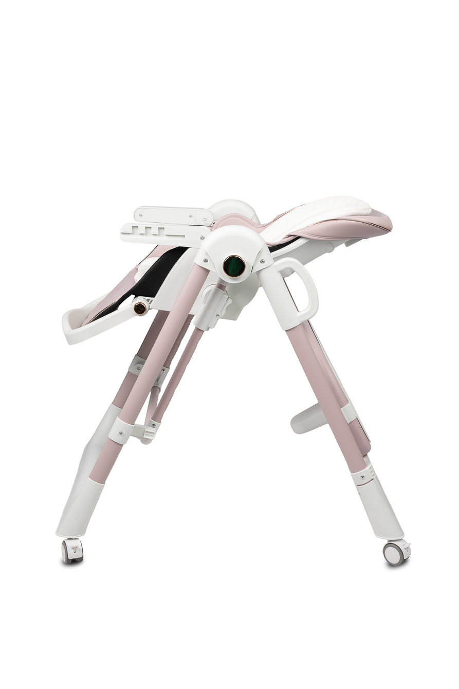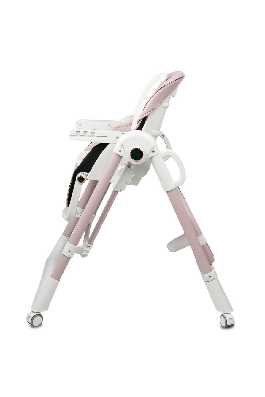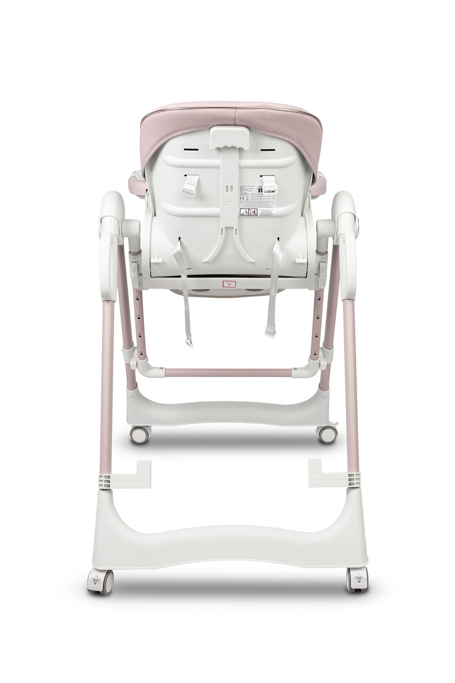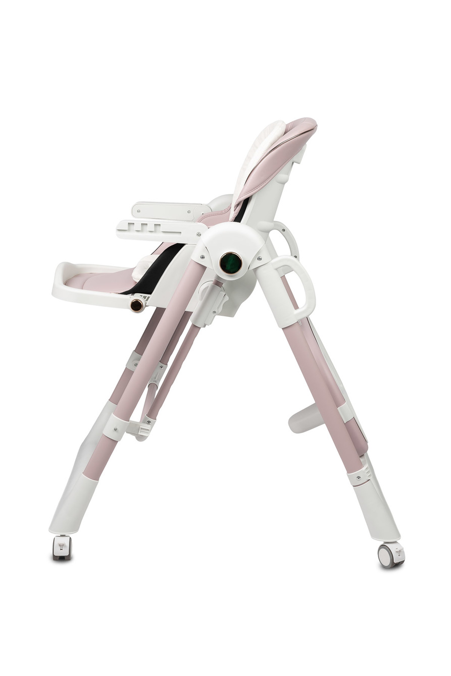 Krzesełko zostało wyposażone w 5-stopniową regulację wysokości, co umożliwia łatwe dopasowanie go do każdego stołu. Dodatkowo tacka odchyla się w 3 pozycjach względem siedziska, co znacząco zwiększa komfort dziecka podczas karmienia.