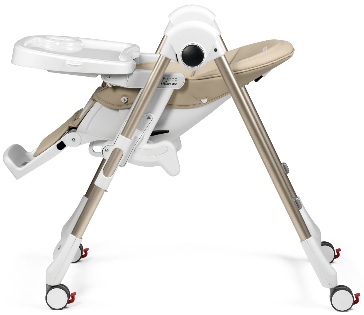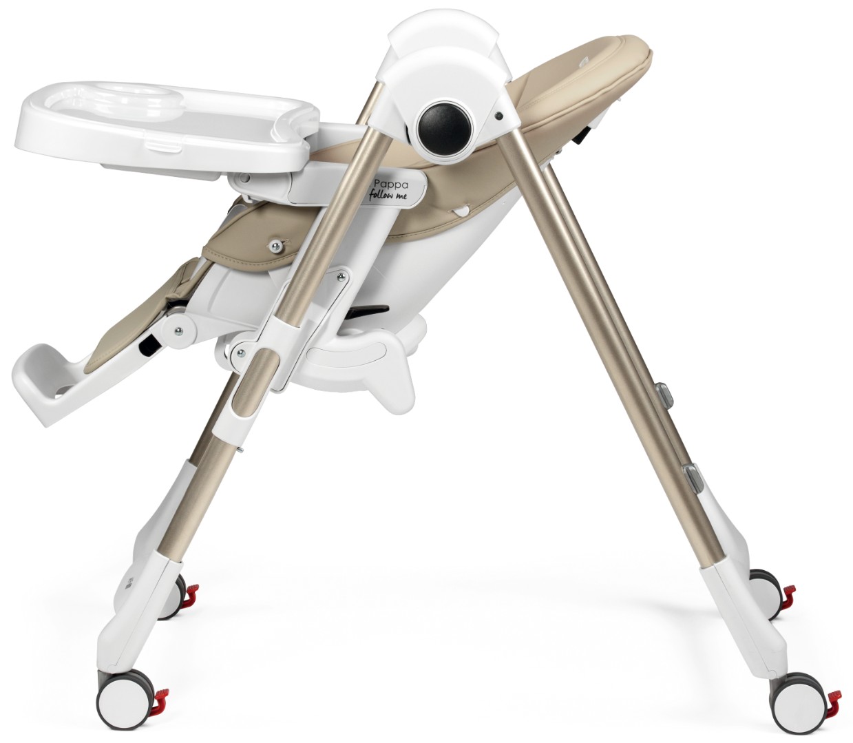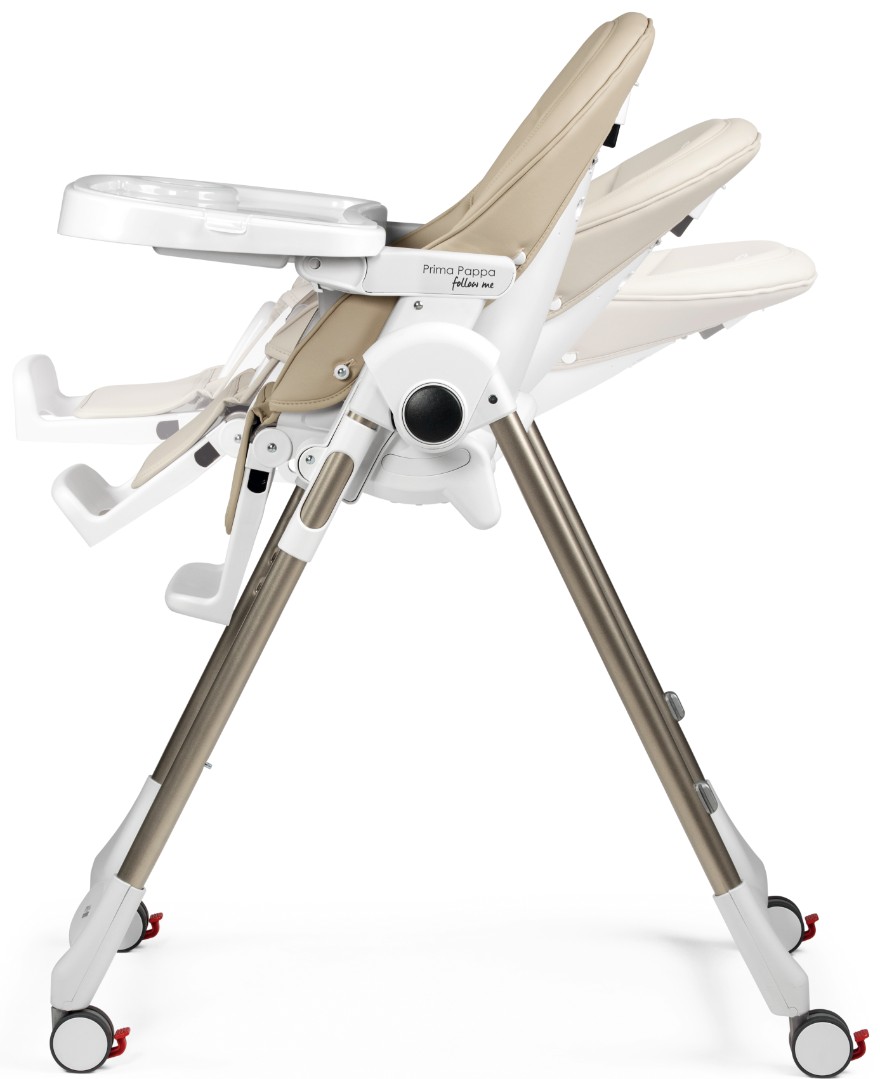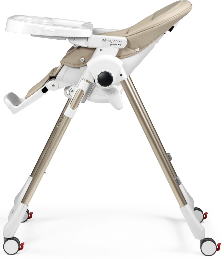 Krzesełko Prima Pappa Follow Me oferuje Państwu te same funkcje, atrakcyjny wygląd oraz bardzo wysoką jakość wykonania jak jego pierwowzór - Prima Pappa Zero3. Jednak ten model, oprócz funkcji leżaczka, został dodatkowo wzbogacony w cztery kołeczka z możliwością blokady oraz dodatkowy element zabezpieczający znajdujący się pod wypinaną tacką, który uniemożliwia dziecku skrzyżowanie nóżek oraz wyślizgnięcie się dziecka po którejś ze stron krzesełka.