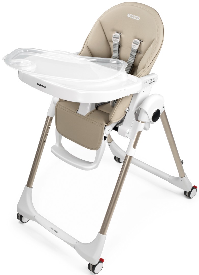 Tapicerka krzesła Prima Pappa Follow Me wykonana jest ze skóry ekologicznej. Istnieje również możliwość dokupienia dodatkowej, dwustronnej wkładki Baby Cushion, którą szczególnie polecamy podczas korzystania z funkcji leżaczka.