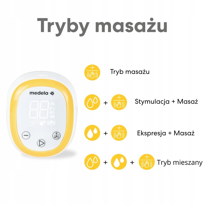 Medela Easy oferuje tryb stymulacji, tryb odciągania oraz tryb mieszany, który łączy oba te tryby, dodając cykle stymulacji pomiędzy cyklami stymulacji lub odciągania. Zapewnia to większy komfort i może wspierać lepszy wypływ mleka.