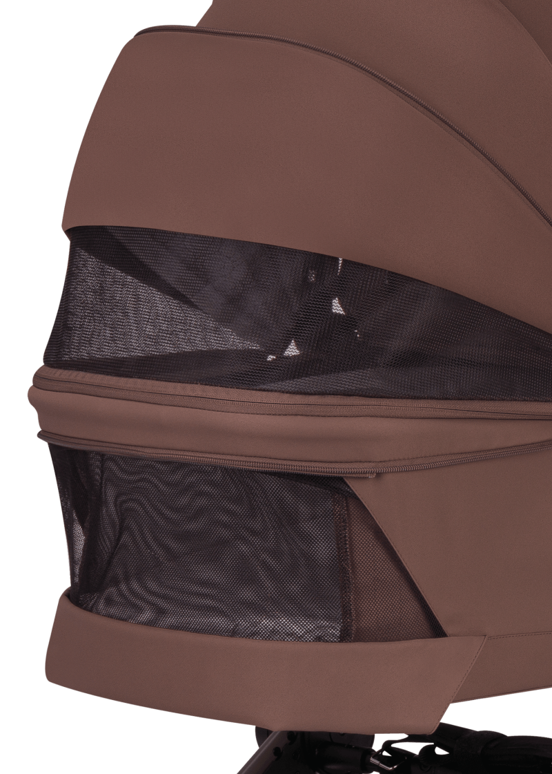 który wspomaga przepływ powietrza podczas spacerów. Budka gondoli oraz siedziska została wykonana z wodoodpornych materiałów z filtrem UPF 50+, dzięki czemu chroni dziecko zarówno przed słońcem, jak i deszczem.