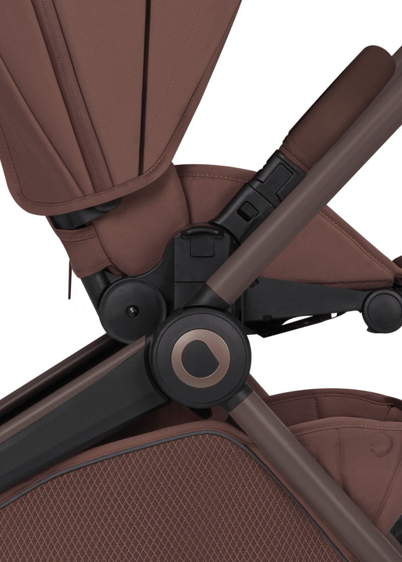 Duże siedzisko spacerówki można ustawić zarówno przodem, jak i tyłem do kierunku jazdy, dzięki czemu dziecko może obserwować świat lub utrzymywać kontakt wzrokowy z rodzicem.