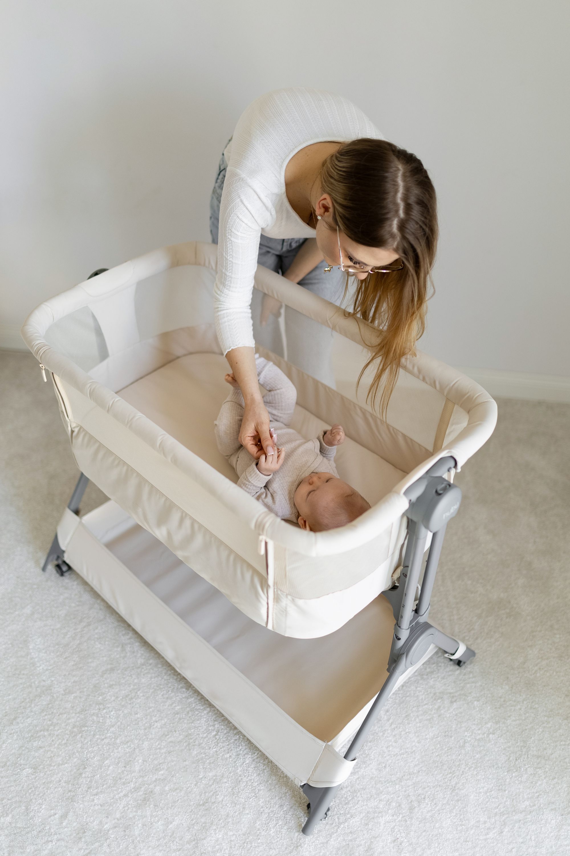 NUBU to funkcjonalne rozwiązanie 2w1 – sprawdza się zarówno jako mobilna dostawka do łóżka rodziców, jak i samodzielne łóżeczko. Dzięki lekkiej konstrukcji i przemyślanym detalom zapewnia wygodę użytkowania na co dzień.