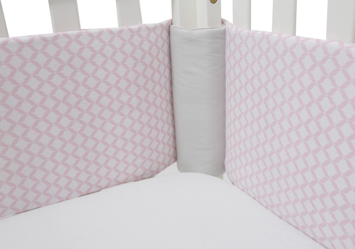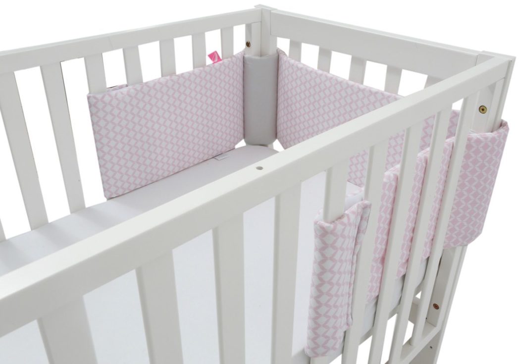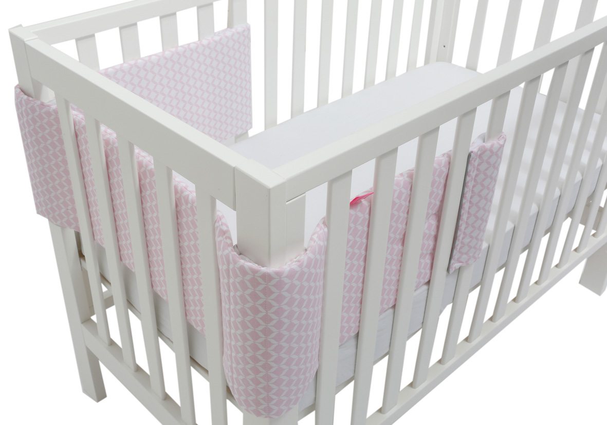 Wypełniony delikatną, atestowaną, przepuszczającą powietrze włókniną, zapewniającą stałą cyrkulację powietrza. Przy trwałym i stabilnym systemie mocowań jest to jeden z najbezpieczniejszych ochraniaczy na rynku, minimalizujący ryzyko SIDS.