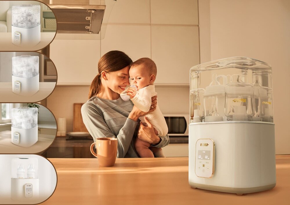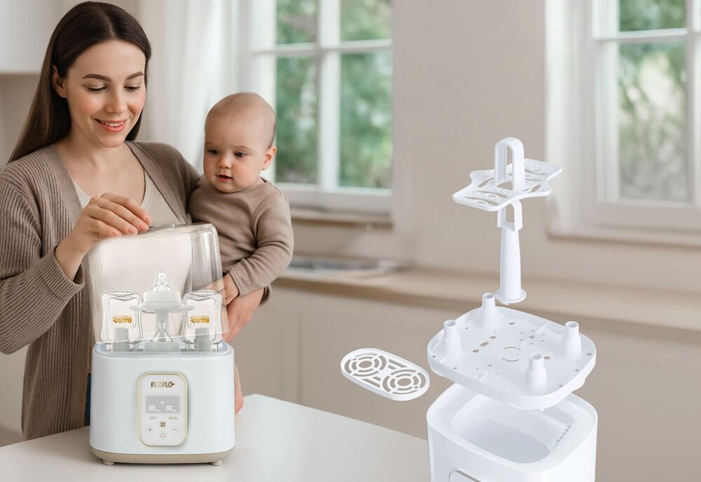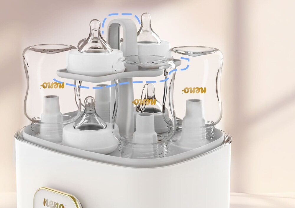 Neno Puro pomieści aż cztery butelki naraz, co pozwala szybko i wygodnie zadbać o więcej akcesoriów za jednym razem. To praktyczne rozwiązanie, które ułatwia codzienną opiekę nad maluchem.