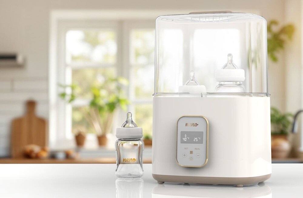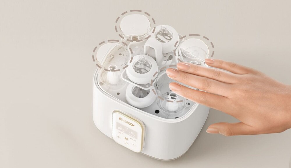 Niezależnie od tego, jakie butelki wybierzesz – Neno Puro bez problemu się do nich dopasuje. Uniwersalne wnętrze sprawia, że to urządzenie rośnie razem z potrzebami maluszka.