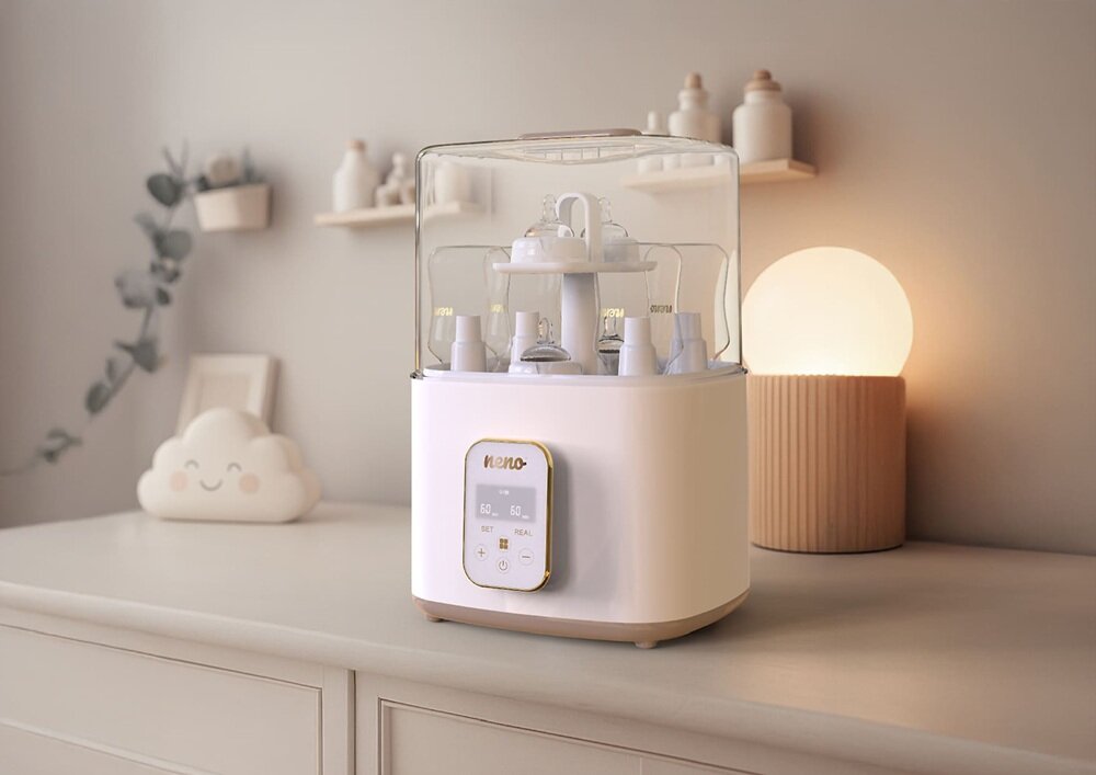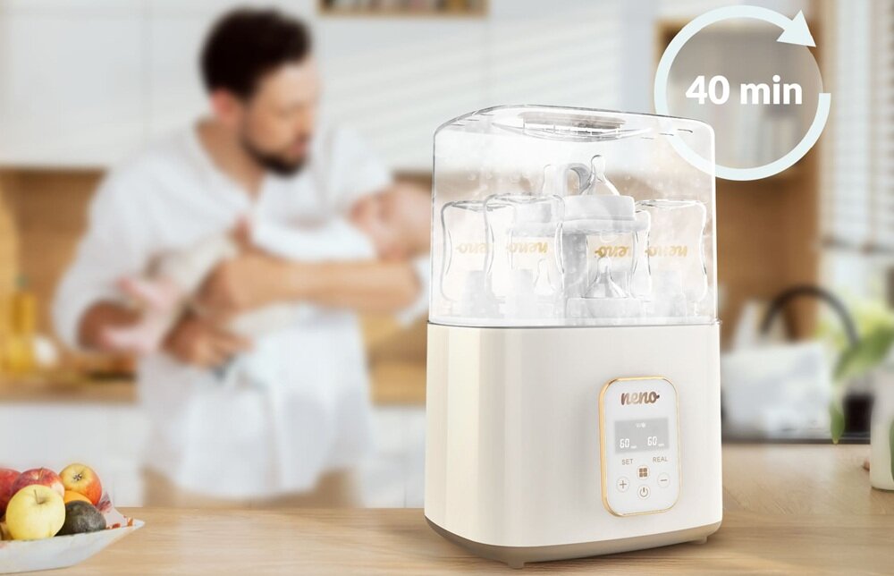Sterylizator, suszarka i podgrzewacz w jednym – Neno Puro pozwala zrezygnować z kilku osobnych urządzeń. Mniej sprzętu na blacie, więcej przestrzeni dla Ciebie. Neno Puro pomieści wszystko, czego potrzebujesz podczas jednego cyklu – od butelek po smoczki. Świetne rozwiązanie dla rodziców, którzy cenią sobie wygodę i porządek.
