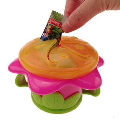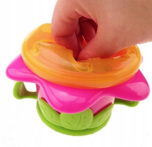 Miękki i silikonowy otwór ułatwia dziecku wyciągać przekąski bez rozsypywania ich. Dzięki temu Twoja pociecha może samodzielnie przechowywać swoje smakołyki. Pojemnik - Kwiatek jest odporny na trudności związane z codziennym użytkowaniem go przez dziecko. Nie odbarwia się, zachowuje swoje jasne kolory.