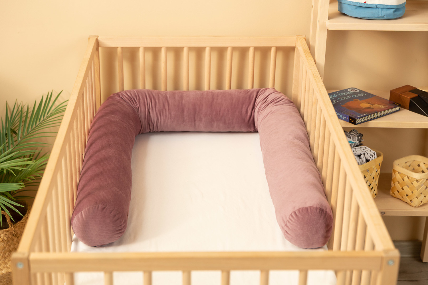 Ochraniacz do łóżeczka w kształcie wałka pomaga dbać o bezpieczeństwo i komfortowy sen dzieci. Zabezpiecza przed uderzeniem w szczebelki oraz izoluje przed chłodem ściany. Kładąc go pod drzwiami lub oknem można wykorzystać go jako ochronę przed przeciągami. Dzięki uniwersalnemu rozmiarowi, nadaje się do użytku przez dzieci w każdym wieku, jak i dorosłych. Ochraniacz jest miękki i elastyczny, a materiał i wypełnienie nie tracą swoich właściwości pomimo wielokrotnego prania. Wypełnienie stanowi antyalergiczna kulka silikonowa.