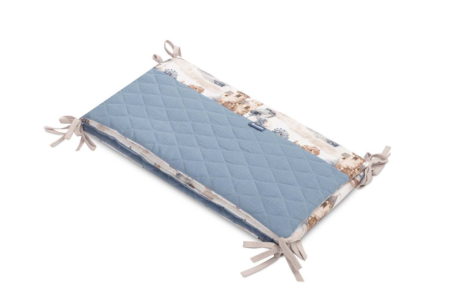 Ochraniacz do łóżeczka pasuje do każdego standardowego łóżeczka dziecięcego. Ochraniacz wykonany jest z miękkiej bawełny z nadrukiem i przyjemnego w dotyku muślinu. Poliestrowe wypełnienie ochroni dziecko przed urazami podczas poruszania się po łóżeczku. Utrzymanie ochraniacza we właściwej pozycji zapewniają tasiemki służące do przywiązania go do szczebelków łóżeczka. Zaprojektowany został do łóżeczka o wymiarach 120x60 cm. Ochraniacz będzie doskonałym dodatkiem do wyprawki dla niemowlaka