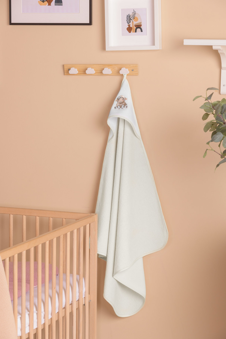 Po każdej kąpieli otul swoje dziecko ciepłem i delikatnością miękkiej bawełny frotte. Okrycie kąpielowe o wymiarach 80×80 cm to doskonałe rozwiązanie dla niemowląt i małych dzieci - zarówno w domu, jak i na basenie. Wykonane z chłonnej, przyjaznej dla skóry bawełny frotte, skutecznie osusza skórę maluszka, nie powodując podrażnień. Biały kaptur z uroczą, haftowaną owieczką chroni mokrą główkę przed wychłodzeniem, a subtelne wykończenie nadaje całości elegancki, dziecięcy charakter.