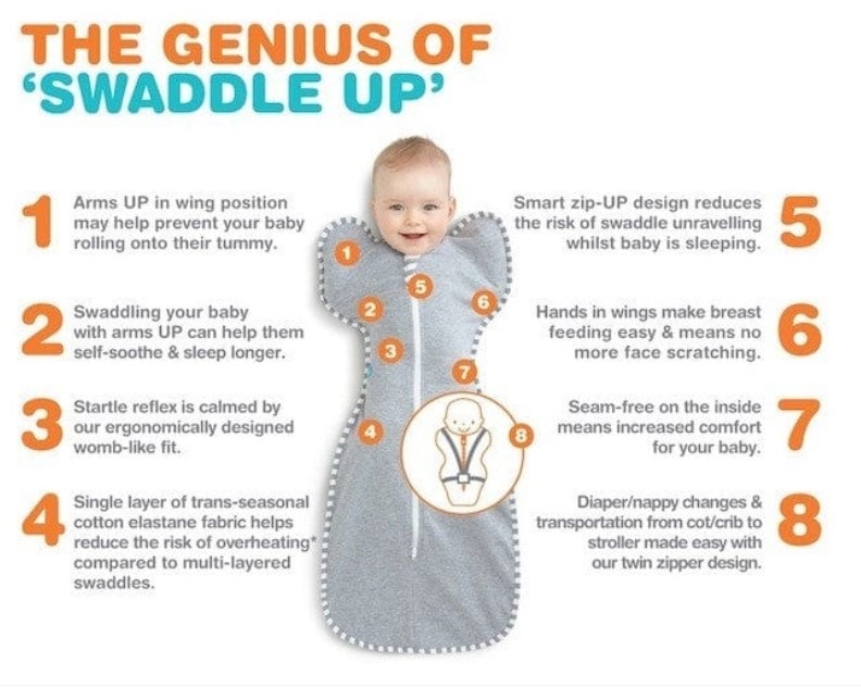 Jedyny zapinany otulacz, który pozwala Twojemu dziecku na spanie w bardziej naturalnej pozycji - z rączkami w górze.