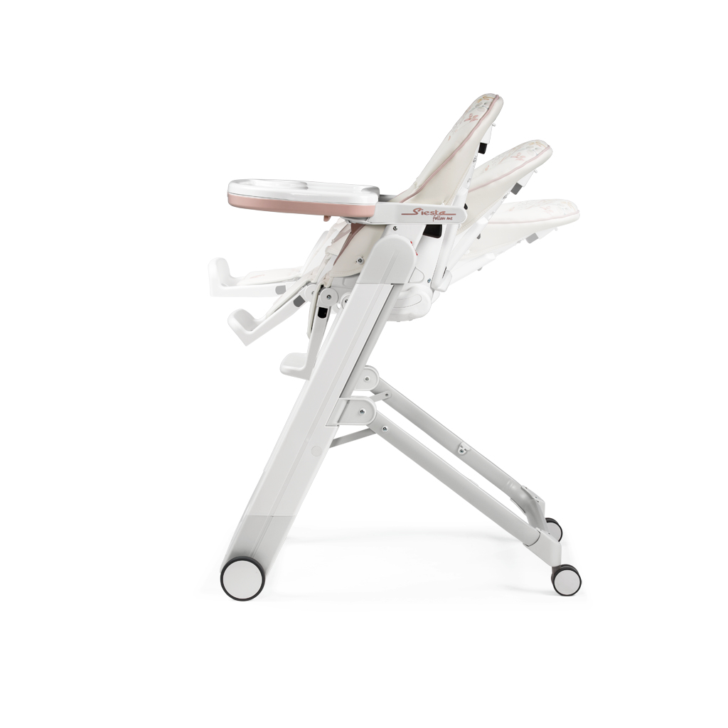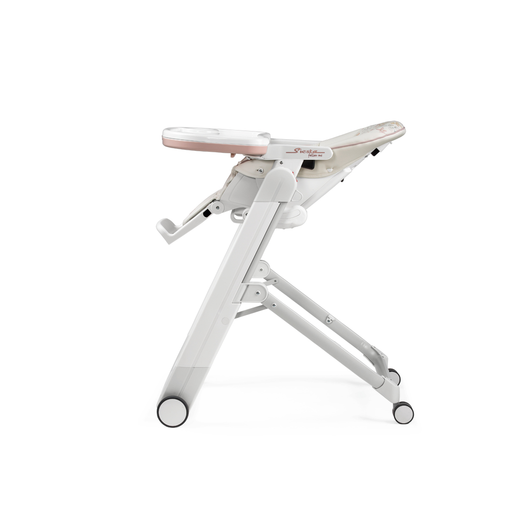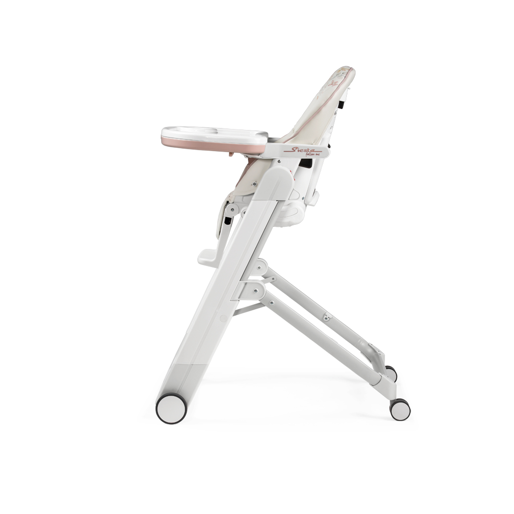 Siesta Follow Me to krzesełko Peg-Pérego wyprodukowane zgodnie z najnowszą obowiązującą normą bezpieczeństwa EN 14988:2017. Oznacza to, że znanym i cenionym modelu Siesta został zmodyfikowany i ulepszony System Stop&Go uniemożliwiający samoczynne przemieszczanie się krzesła, a w wypinanym blacie krzesełka pojawił się dodatkowy element uniemożliwiający dziecku skrzyżowanie nóżek oraz wyślizgnięcie się z krzesełka.