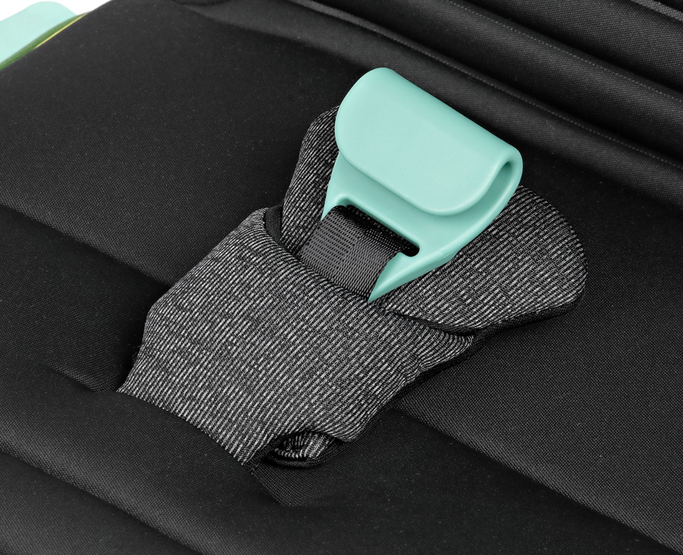 Gdy fotelik nie jest używany można go złożyć w kompaktową „walizkę” z uchwytem do przenoszenia, dzięki czemu fotelik nie zajmuje dużo miejsca podczas przechowywania, a tapicerka jest chroniona przed zabrudzeniem.