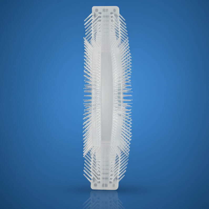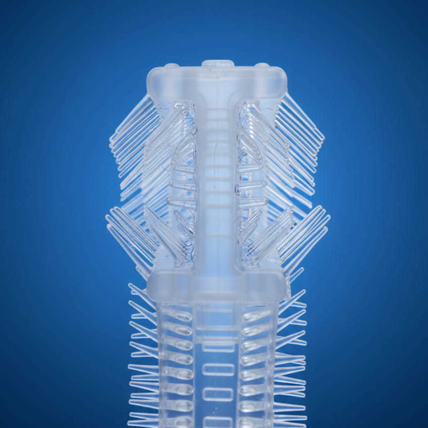 Unikalna konstrukcja główki obejmuje zęby z trzech stron jednocześnie. Dziecko wkłada szczoteczkę do buzi i wykonując proste ruchy na boki, czyści zarówno górny, jak i dolny łuk zębowy. Dzięki temu:
