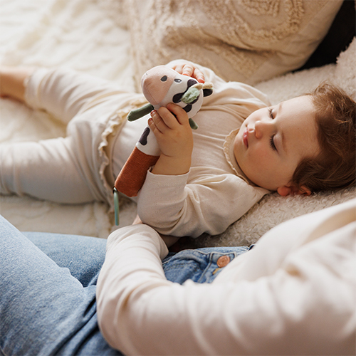Różnorodne kolory zabawki angażują wzrok, piszczałka stymuluje słuch, a miękkie uszy krówki i sznureczek zachęcają do chwytania. Twój maluszek rozwija swoje zmysły i doskonali umiejętności manualne.