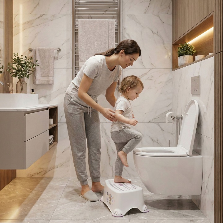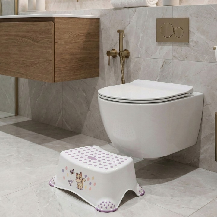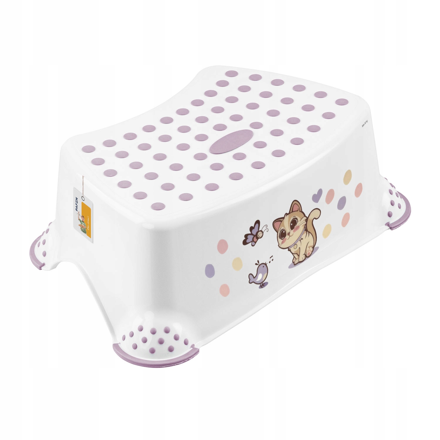 Podest pomaga dziecku już od najmłodszych lat dosięgnąć toalety, umywalki, stołu itp. Jest praktyczny, lekki oraz bezpieczny. Charakterystyczną cechą produktu jest antypoślizgowa gumowa powierzchnia na wierzchu oraz przy nóżkach stołka, dzięki której dziecko czuje się stabilnie podczas wykonywania codziennych czynności. Dzięki antypoślizgowym krawędziom jest stabilny i bezpieczny. Przydatny nie tylko w łazience, ale wszędzie gdzie potrzebne jest bezpieczne podwyższenia.