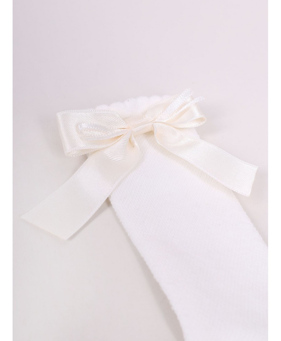 Delikatny ażurowy wzór nadaje im eleganckiego charakteru, a kokardka dodaje dziewczęcego akcentu.