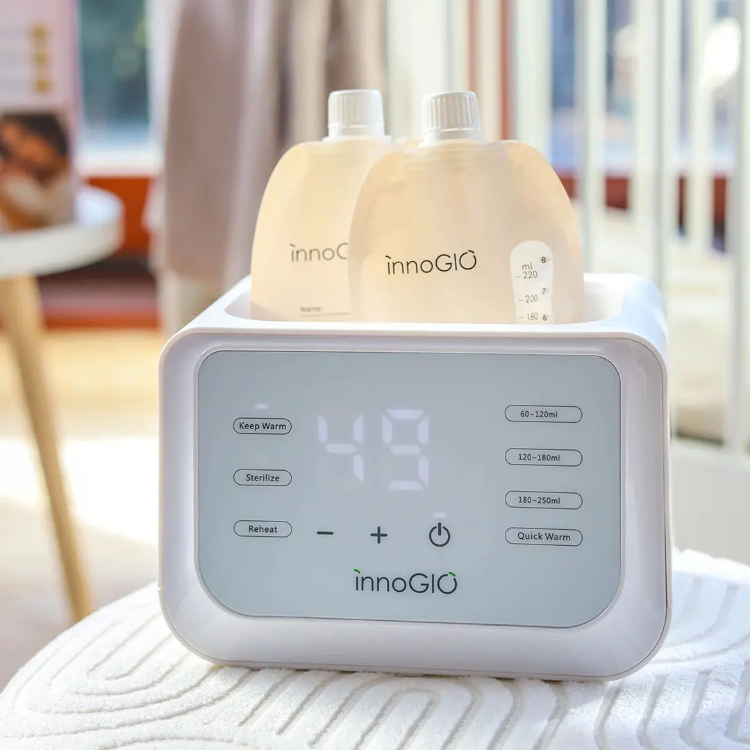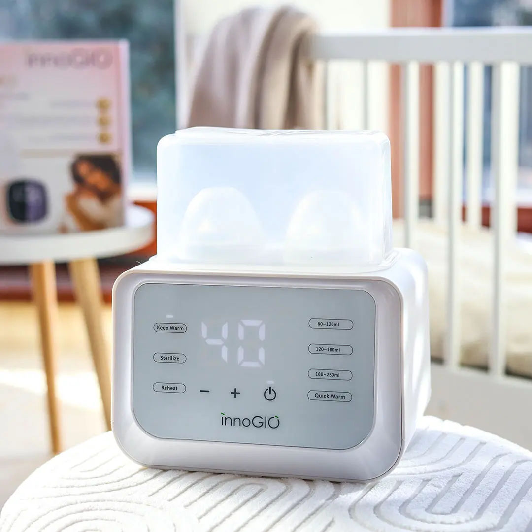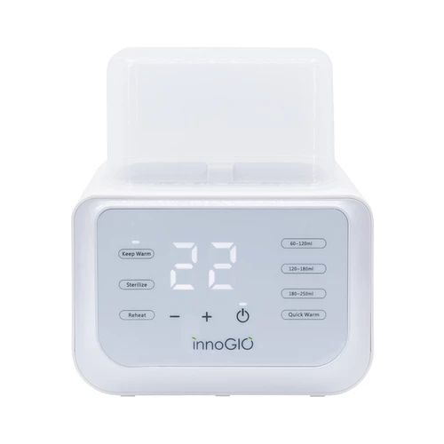 GIOwarm Fast Duo to podwójny podgrzewacz i sterylizator w jednym. To doskonałe urządzenie, które w szybki sposób podgrzeje do pożądanej temperatury podwójną porcję mleka, obiadku, czy napoju, przygotowaną dla dziecka. GIOwarm Fast Duo w szybki sposób wysterylizuje dziecięce butelki tak, aby były gotowe do użycia w każdym momencie. Dzięki szerokiemu, podwójnemu „koszyczkowi”, na którym dokładnie widoczne jest oznaczenie poziomu wody niezbędnej do podgrzania czy sterylizacji GIOwarm Fast Duo jest bezpieczny w użyciu. Podwójny koszyczek umożliwia równoczesne podgrzewanie, rozmraża lub utrzymuje w stałej temperaturze pokarmy w dwóch niezależnych butelkach czy słoiczkach.
