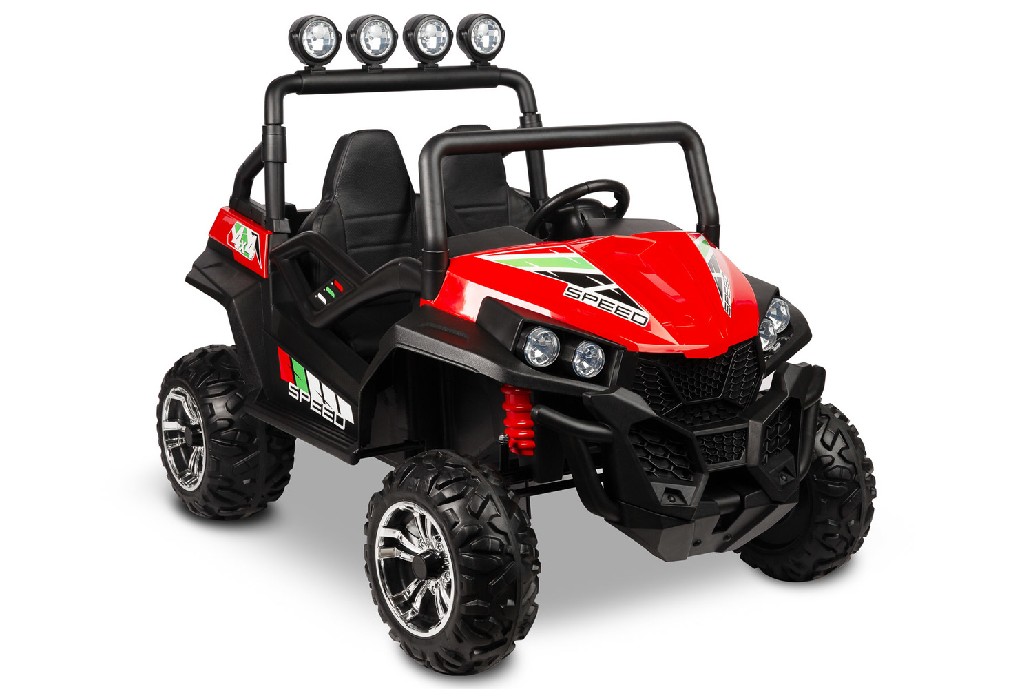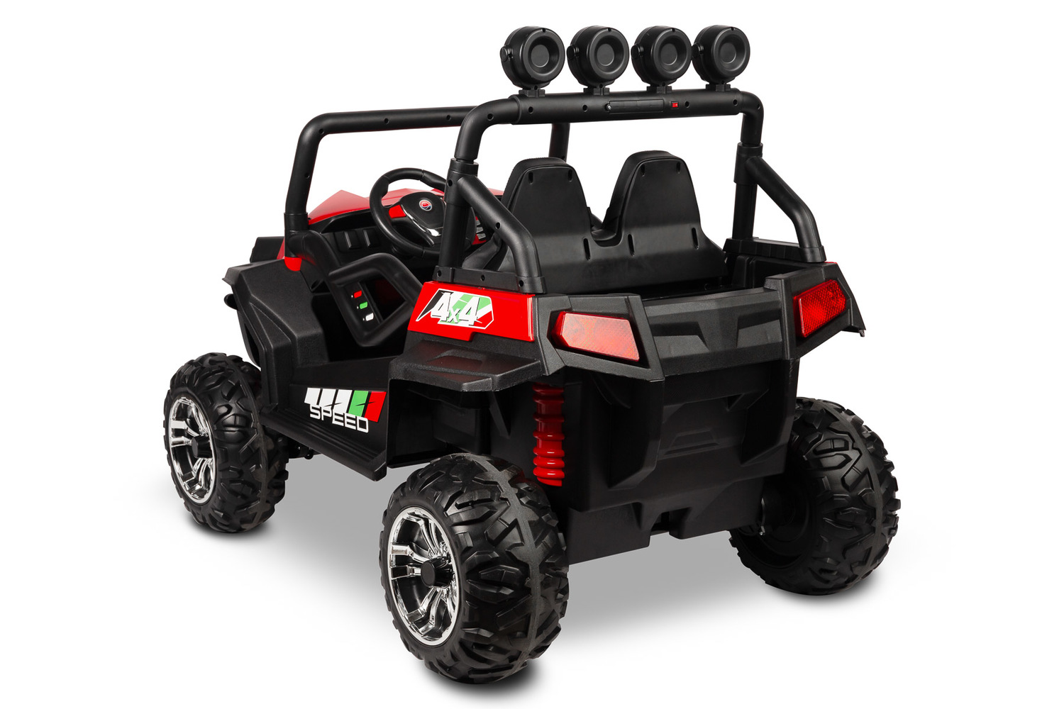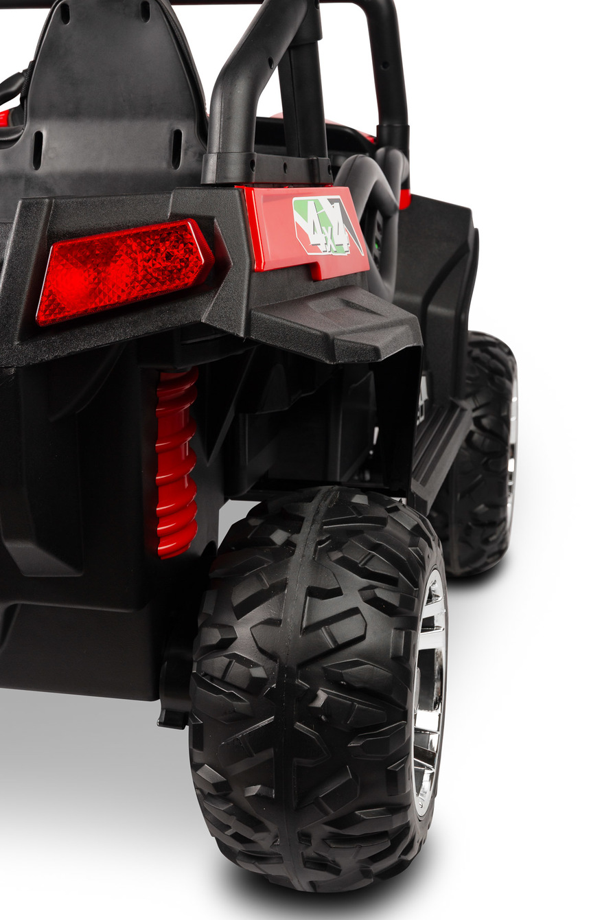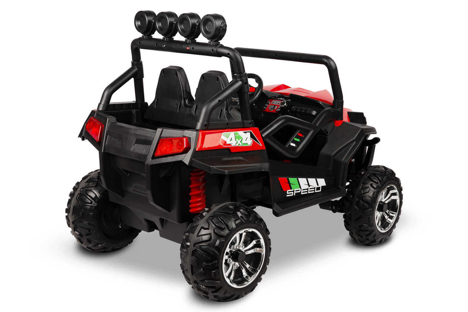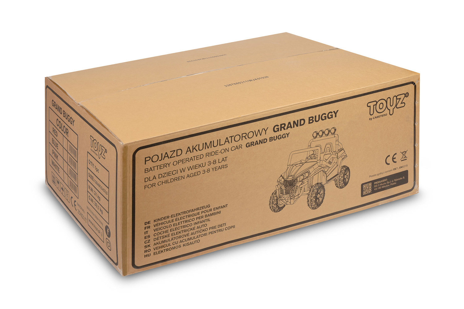 Grand Buggy to więcej niż elektryczny pojazd - to początek prawdziwej przygody na czterech kołach. Zaprojektowany z myślą o dzieciach w wieku od 3 do 8 lat, łączy wyjątkowy wygląd terenówki z komfortem, bezpieczeństwem i funkcjonalnością, jakiej oczekują rodzice. Dzięki napędowi na cztery koła, mocnym silnikom 24V i imponującej nośności aż do 59 kg, pojazd poradzi sobie zarówno na gładkich alejkach, jak i w bardziej wymagającym terenie. To niezapomniane emocje - z każdą przejażdżką.