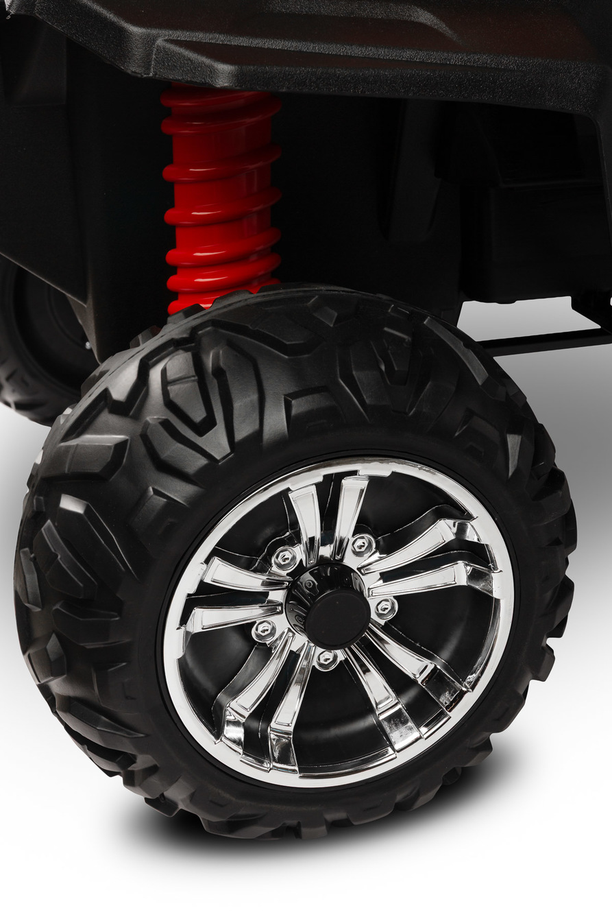 Cztery silniki o mocy 45W (24V) gwarantują stabilność i odpowiednią siłę na każdej nawierzchni - od podjazdu pod domem po parkowe ścieżki. Grand Buggy osiąga bezpieczną, a jednocześnie ekscytującą prędkość do 6 km/h, pozwalając małym kierowcom cieszyć się samodzielną jazdą w pełni bezpiecznych warunkach.