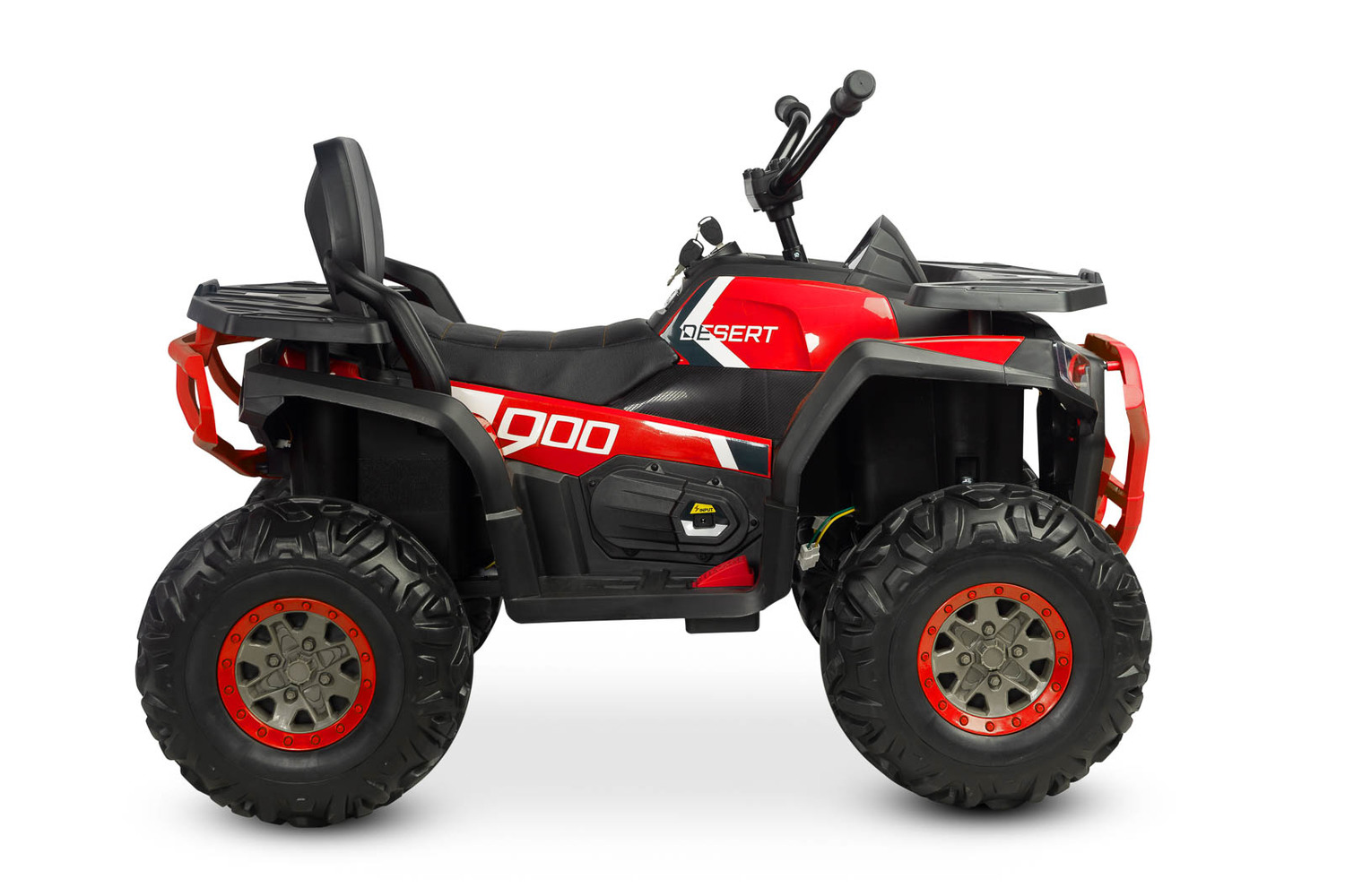 Terra od Toyz to pojazd akumulatorowy gotowy na wyprawę w teren. Quad napędzany jest 4 silnikami o mocy 45W i ma możliwość zmiany trybu napędu pomiędzy 4x2 i 4x4. Obszerne siedzisko oraz przednie i tylne amortyzatory pozwalają na wygodną jazdę. Duże koła z wysokiej jakości pianki EVA, wolny start, automatyczny hamulec oraz siedzisko z oparciem wykończone ekoskórą gwarantują bezpieczną zabawę. Przednie i tylne światła LED zapewniają widoczność pojazdu i dają więcej frajdy z jazdy o zmierzchu. Dodatkowo Terra posiada panel multimedialny z bluetooth, który umili czas spędzony na quadzie. Pojazd ma możliwość zdalnego sterowania za pomocą pilota.