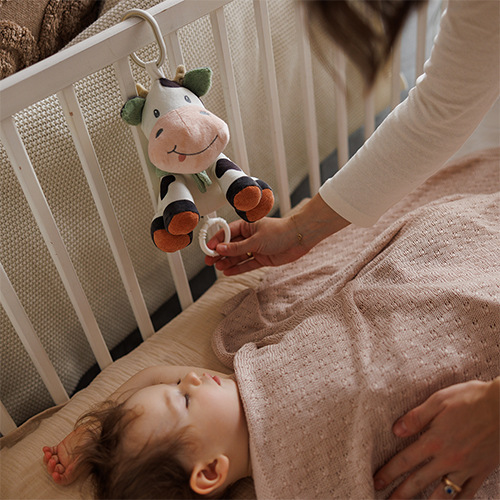 Krówkę z praktycznym uchwytem możesz zawiesić na łóżeczku, wózku lub foteliku. To piękna dekoracja dziecięcego pokoju, jak i towarzysz spacerów. Przytulanka z pozytywką będzie zawsze blisko Twojego szkraba.