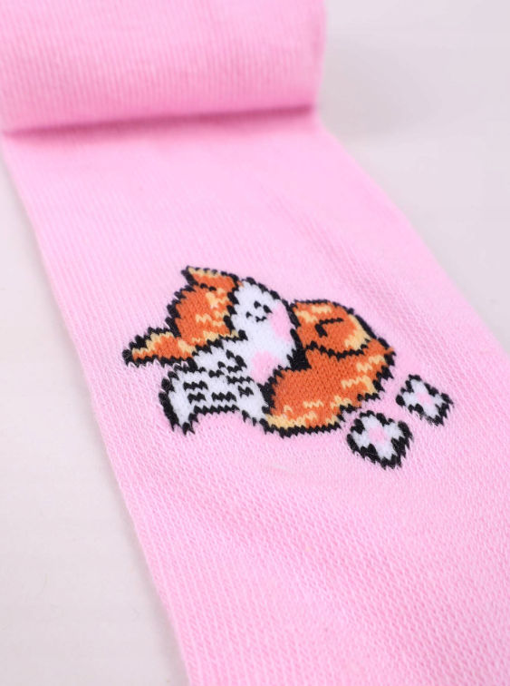Bawełniane, kryjące rajstopy dla dziewczynki. W dziewczęcych kolorach, z wesołymi motywami na nóżkach. Uszyte z miękkiej i zarazem wytrzymałej bawełny, która gwarantuje duży komfort noszenia.