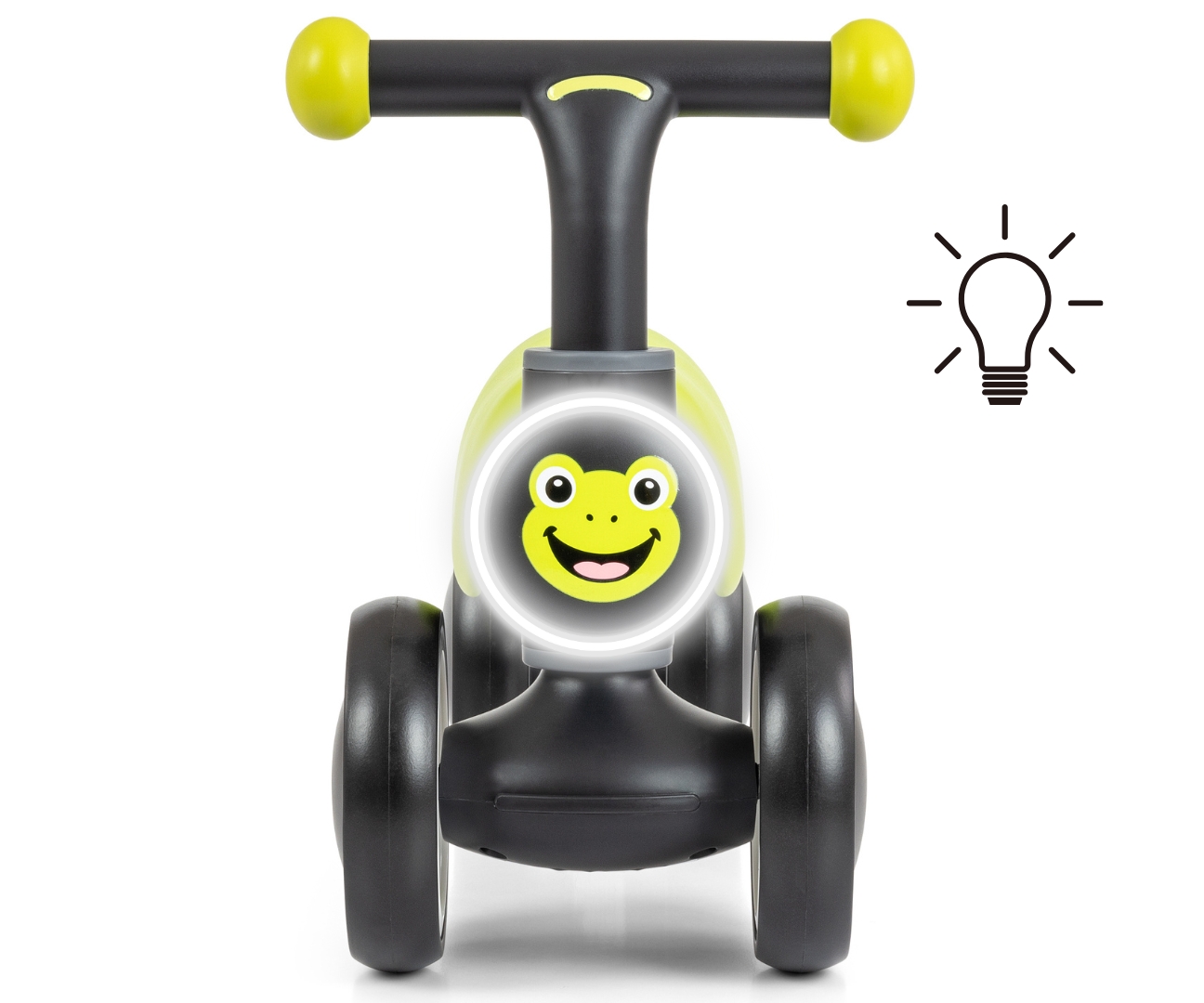 Atutem modelu YORK jest wbudowane światełko LED umieszczone w przedniej części, które nie tylko przyciąga wzrok i uatrakcyjnia wygląd pojazdu, ale także zwiększa bezpieczeństwo, czyniąc jazdę bardziej realistyczną i ekscytującą. Wyposażony jest również w efekty dźwiękowe – melodie oraz odgłosy zwierząt - co zwiększa jego atrakcyjność. Całość została zaprojektowana z dbałością o detale, a kolorowy design z uroczym motywem zwierzaka sprawia, że pojazd szybko staje się ulubioną zabawką dziecka.