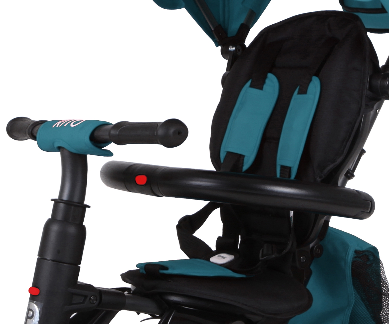 RITO PLUS jest stabilny i bezpieczny, posiada nowoczesną konstrukcję i wygodne wyprofilowane siedzisko. Rowerek został wyposażony w barierkę zabezpieczająca dziecko przed wypadnięciem, pięciopunktowe pasy bezpieczeństwa oraz podnóżki, a piankowe koła umożliwiają cichą i komfortową jazdę. Po zdemontowaniu rączki, barierek, budki i pokrowca na siedzisko RITO PLUS będzie służył jako klasyczny rowerek trójkołowy. Dzięki funkcji „wolnego koła i kierownicy” dziecko może swobodnie pedałować i skręcać, a rodzic posiada pełną kontrolę nad kierunkiem i prędkością jazdy.