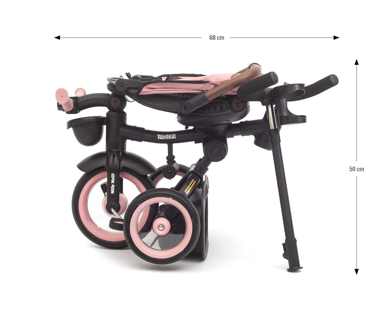 Wyposażony w regulowaną rączkę do prowadzenia, funkcję wolnego koła, hamulec, a także pasy bezpieczeństwa z osłonkami i wygodne oparcie z trzystopniową regulacją - Twinkle gwarantuje pełną kontrolę i wygodę dla dziecka i rodzica. Lekka, ale wytrzymała stalowa rama, piankowe, łożyskowane koła, składana konstrukcja oraz praktyczne dodatki, jak budka z siateczką, światło LED, uchwyt na napój, i 2 kufereki, sprawiają, że to idealny wybór na każdą okazję – w mieście, na spacerze czy w podróży. Po zdemontowaniu rączki do pchania, barierek i budki Twinkle będzie służył jako klasyczny rowerek trójkołowy.