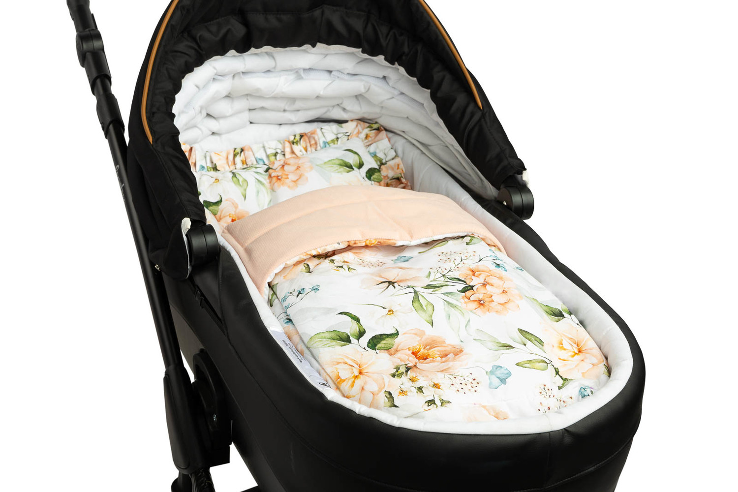 Komplet do wózka velvet z falbanką to atrakcyjna pozycja w gamie produktów Sensillo. W skład kompletu wchodzi śliczna poduszka falbanką oraz kołderka z delikatnym wypełnieniem. Dwustronny komplet jest wykonany z wysokiej jakości materiałów – kolorowej bawełny oraz bardzo przyjemnej tkaniny velvet, która utuli każdego bobasa. Komplet idealnie sprawdza się w wózku, łóżeczku, kołysce czy jako mata dla maluszka. Sama poduszka może służyć jako przytulanka.