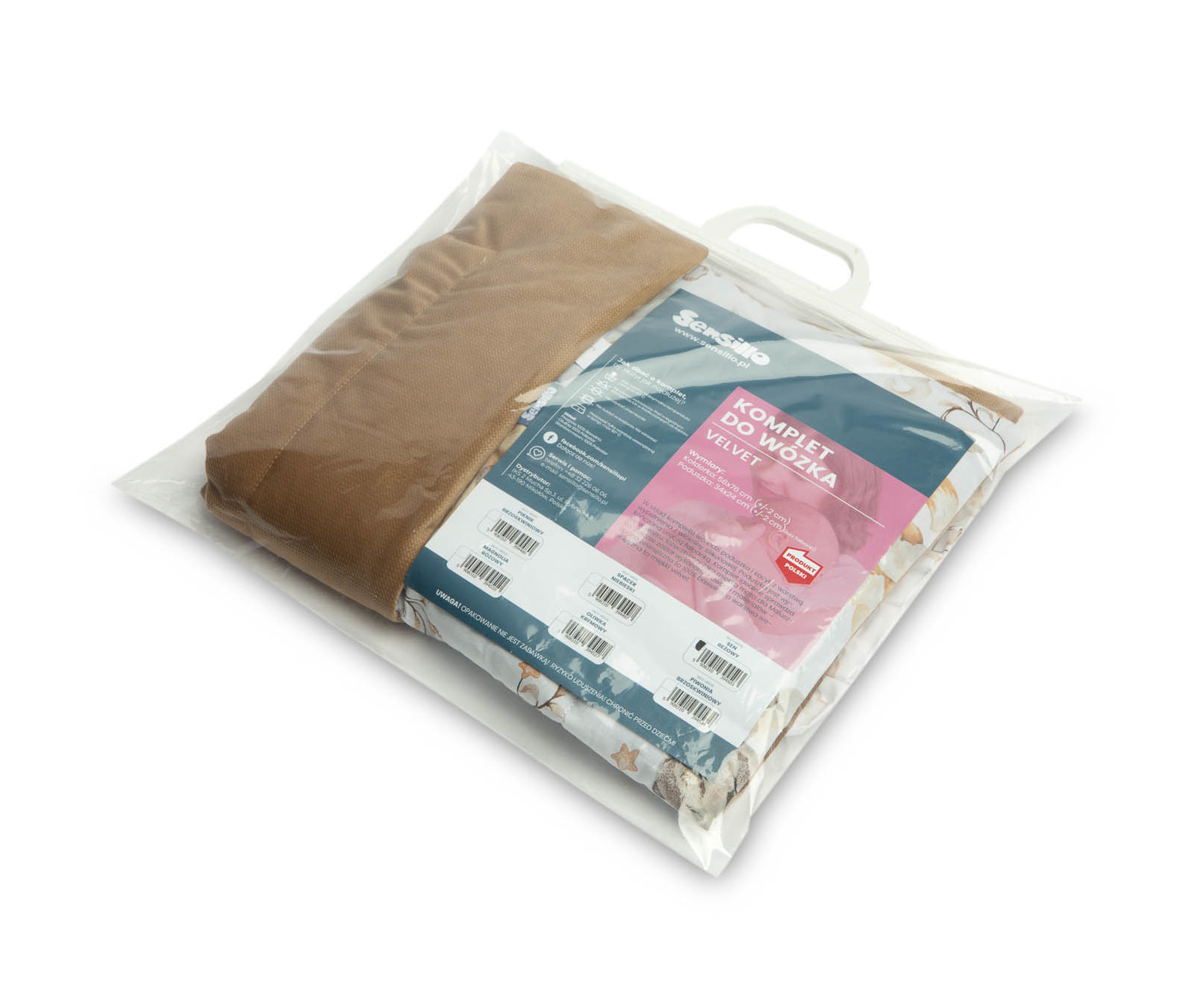 Komplet do wózka velvet z falbanką to atrakcyjna pozycja w gamie produktów Sensillo. W skład kompletu wchodzi śliczna poduszka falbanką oraz kołderka z delikatnym wypełnieniem. Dwustronny komplet jest wykonany z wysokiej jakości materiałów – kolorowej bawełny oraz bardzo przyjemnej tkaniny velvet, która utuli każdego bobasa. Komplet idealnie sprawdza się w wózku, łóżeczku, kołysce czy jako mata dla maluszka. Sama poduszka może służyć jako przytulanka.