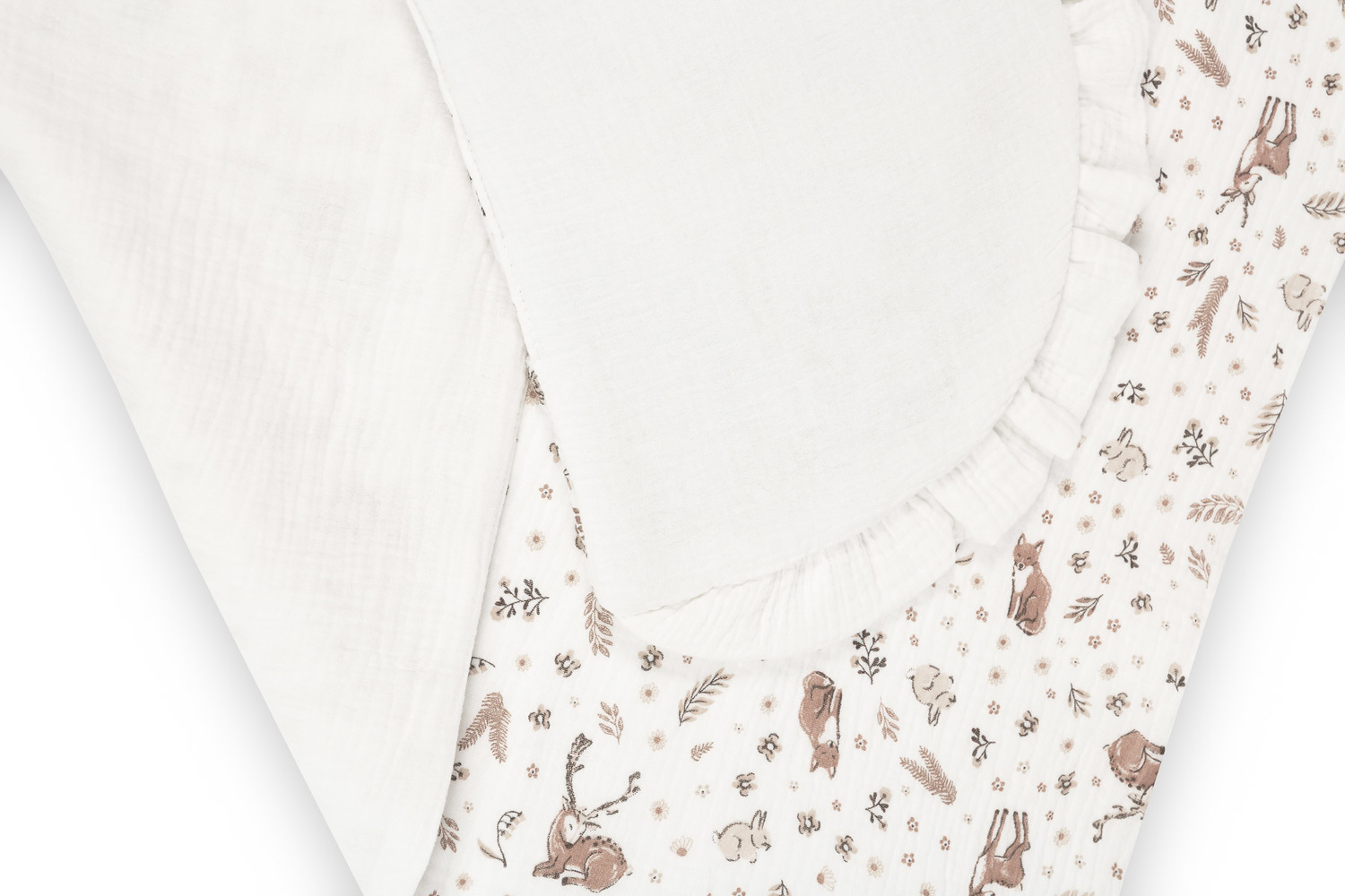 Muślinowy komplet do wózka – lekka kołderka i poduszka z falbanką