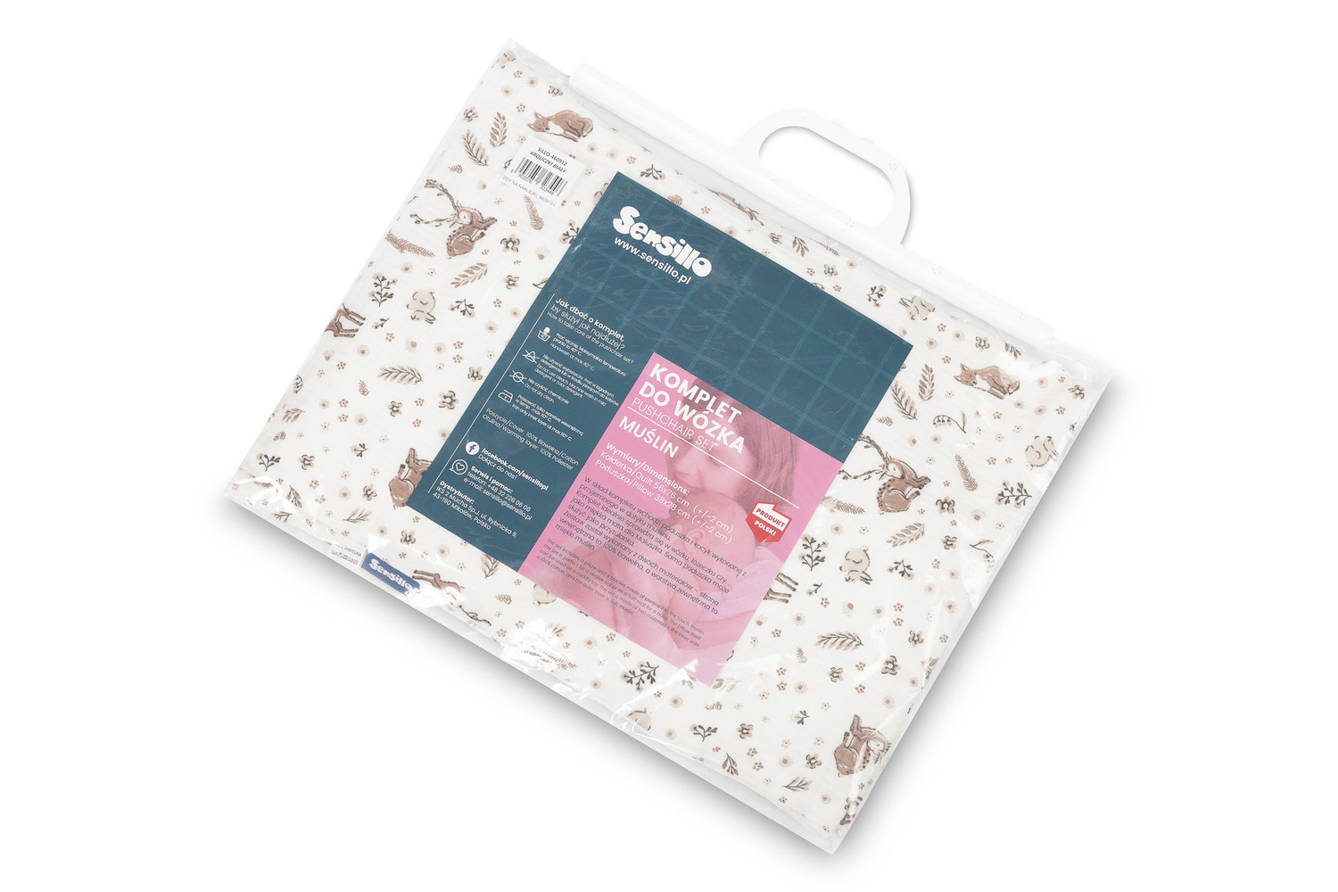 Styl i komfort w jednym! Nasz uroczy komplet do wózka został uszyty z miękkiego, oddychającego muślinu – idealnego dla delikatnej skóry niemowlęcia. Naturalna tkanina zapewnia doskonałą cyrkulację powietrza i zapobiega przegrzaniu, dlatego ten zestaw świetnie sprawdzi się podczas ciepłych, a nawet upalnych dni.