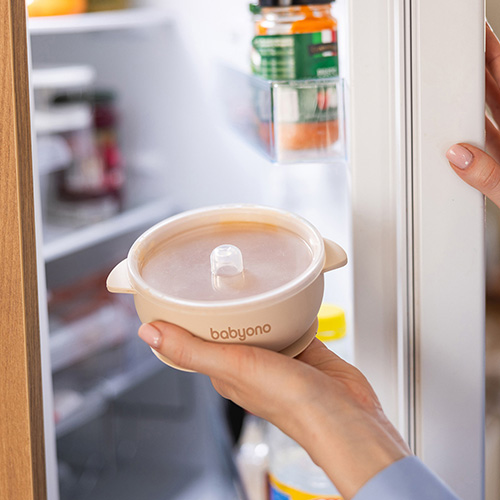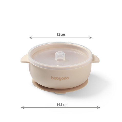 Chcesz wprowadzić nowe smaki do diety maluszka? Silikonowa miseczka z przyssawką i przykrywką Babyono ułatwi Ci rozszerzanie diety dziecka i wspomoże naukę samodzielnego jedzenia. Podasz w niej zupki, makarony, warzywa, owoce i jogurty. Dzięki mocnej przyssawce silikonowa miska dla dziecka pozostaje na miejscu, nawet gdy ciekawskie rączki chcą ją wywrócić. Zaokrąglony kształt pozwala maluchowi samemu nabierać jedzenie. Pokrywka utrzymuje świeżość i ciepło posiłku, a antypoślizgowe uchwyty umożliwiają wygodne przenoszenie miseczki. Naszą miseczkę do karmienia niemowląt z przyssawką wykonaliśmy z bezpiecznego silikonu, wolnego od BPA i trwałego. Nadaje się do mikrofalówki i zmywarki.