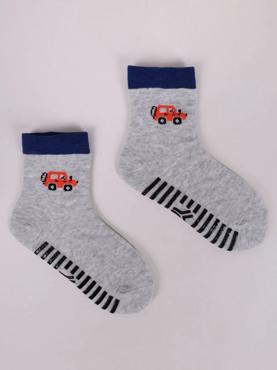 Chłopięce skarpety są miłe w dotyku, posiadają nieupijający ściągacz.