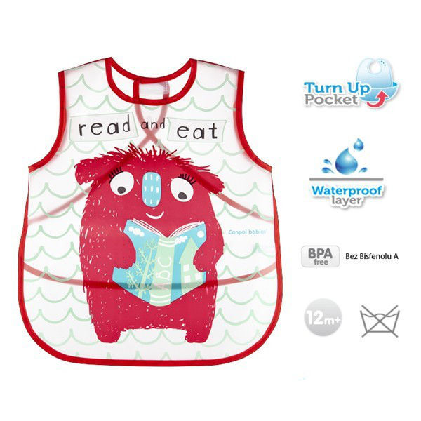 Dodatkowo wyposażony w kieszeń, która może posłużyć do przechowywania drobnych przedmiotów np. kredek, w czasie zabawy lub wyłapywać spadające okruszki podczas jedzenia.