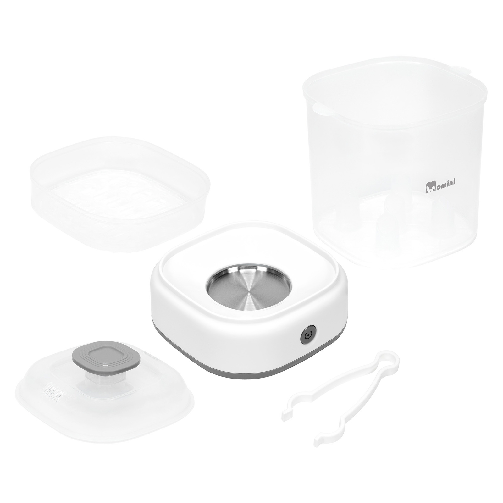 Sterylizator Momini QuickSteam to kompaktowe, a przy tym pojemne urządzenie, które zabija bakterie parą wodną – bez chemii, bez zamieszania. Gotowy do działania jednym przyciskiem, bo Twój spokój to też jego zadanie.