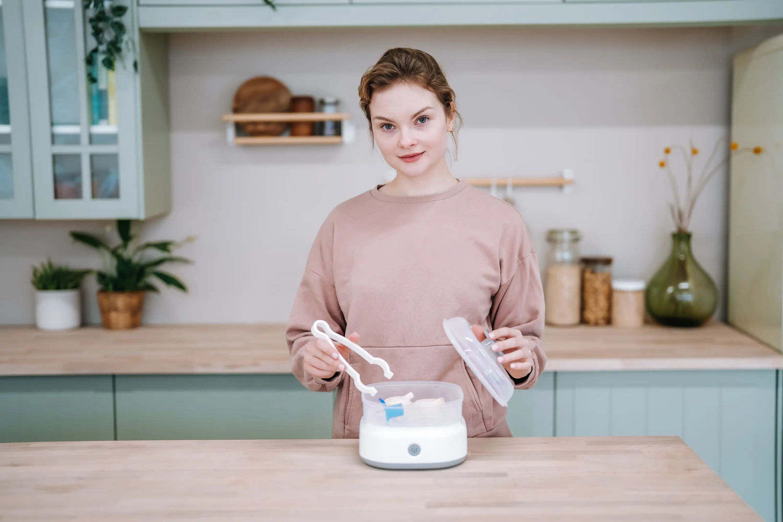 Nie potrzebujesz wrzątku ani skomplikowanych ustawień – wystarczy jeden przycisk, a po 8 minutach wszystkie butelki, smoczki czy laktatory są gotowe do użycia.