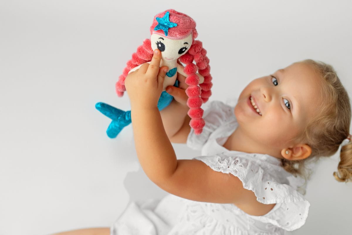 Mięciutka, szmaciana Syrenka Emma od Mom's Care została stworzona z myślą o wszystkich dziewczynkach. Burza różowych loków, gwiazda we włosach i błyszcząca płetwa to jej znaki rozpoznawcze. Maskotka jest idealna jako pierwsza laleczka dla małego dziecka. Rewelacyjnie sprawdzi się także jako przytulanka, pomagającą szybko zasnąć. Za chwilę stanie się pierwszą przyjaciółką Twojej córki, idącą z nią przez świat. Pozwoli na zabawę, której jedynym ograniczeniem jest wyobraźnia.
