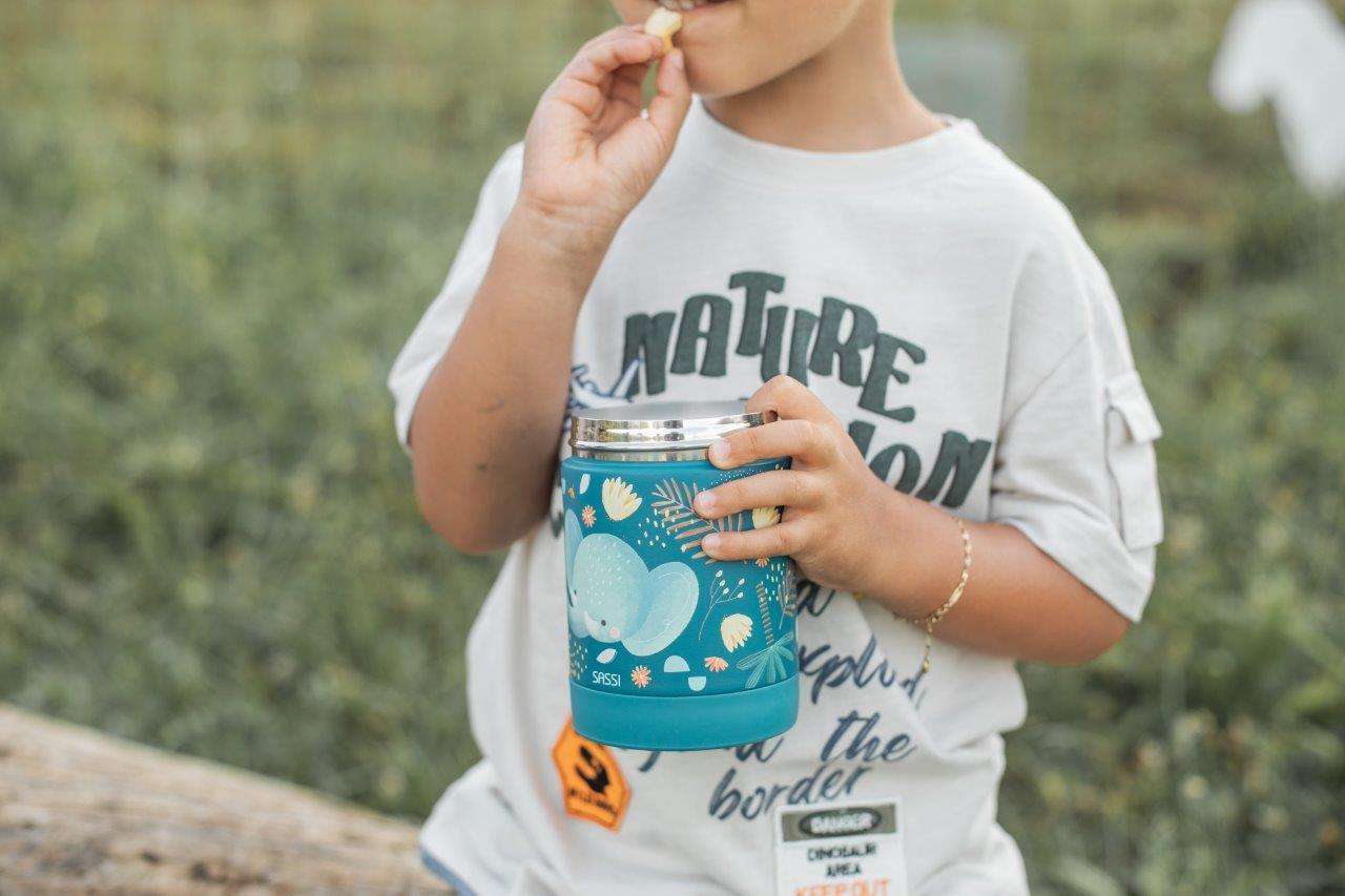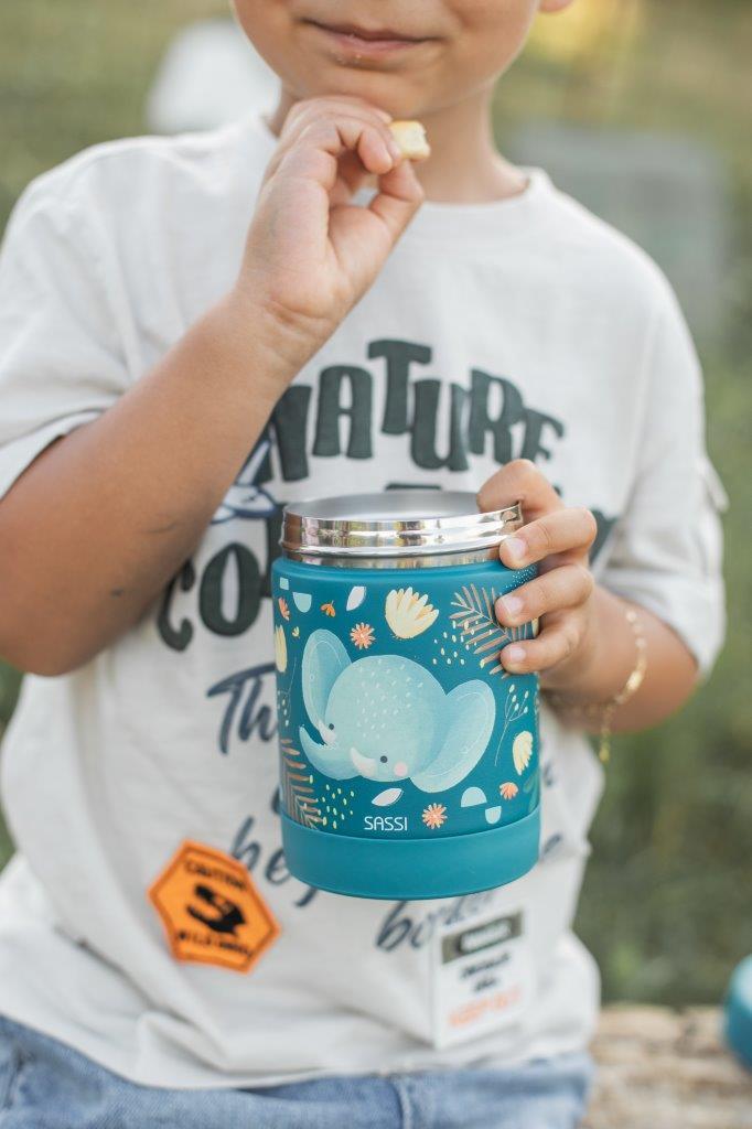 Stylowy i uroczy termos na jedzenie malucha włoskiej marki SASSI powstał w trosce, by posiłki Twojego dziecka zawsze miały idealną temperaturę - zarówno w przedszkolu, jak i podczas rodzinnych wycieczek. Ten termiczny pojemnik na jedzenie ze stali nierdzewnej z uroczym motywem słonika to niezawodny towarzysz codziennych przygód. Dzięki podwójnym ściankom