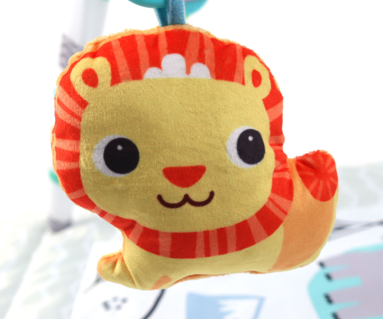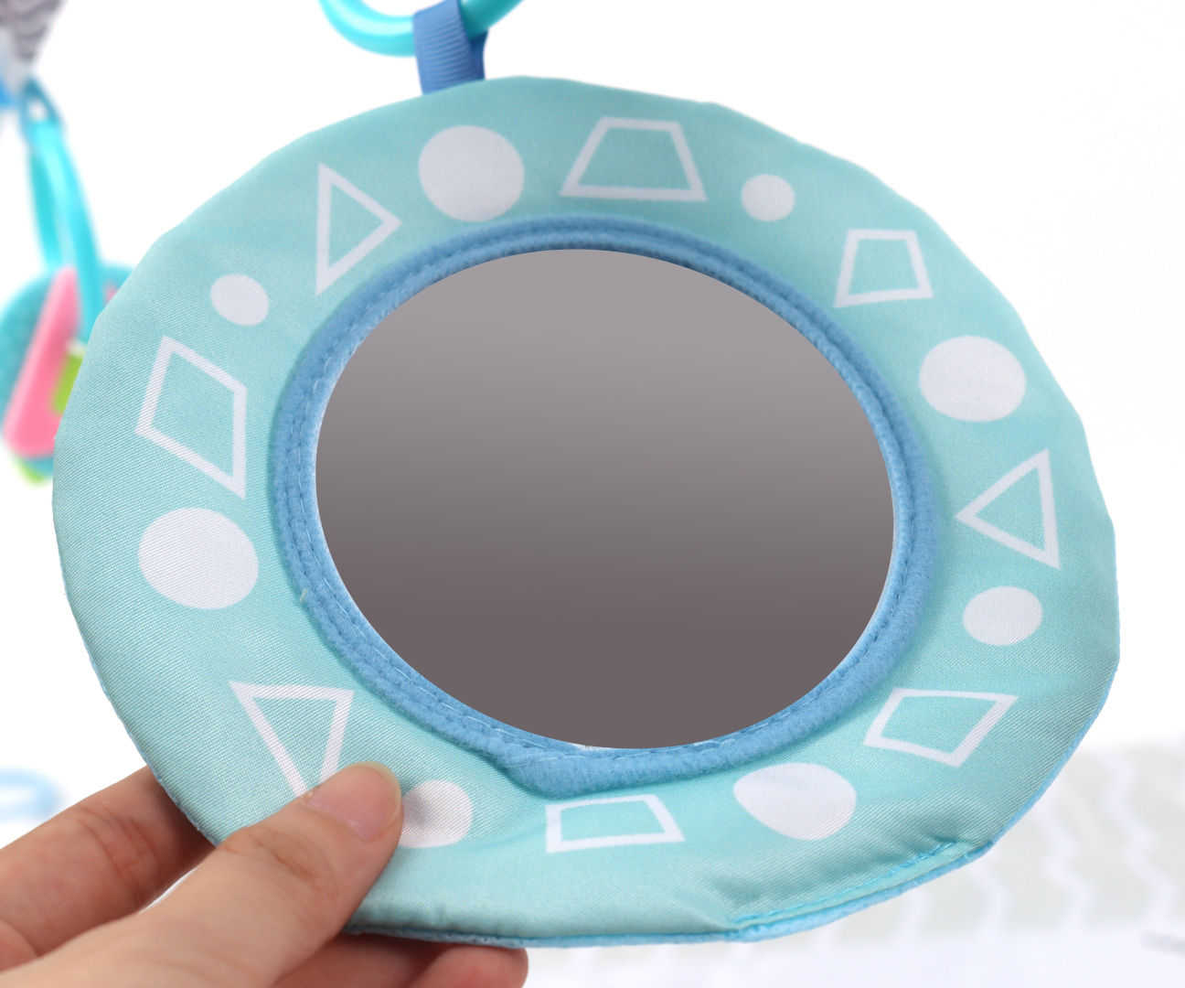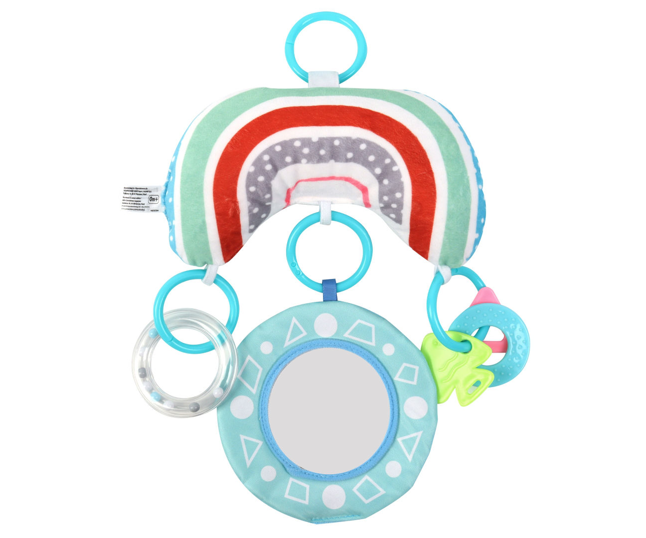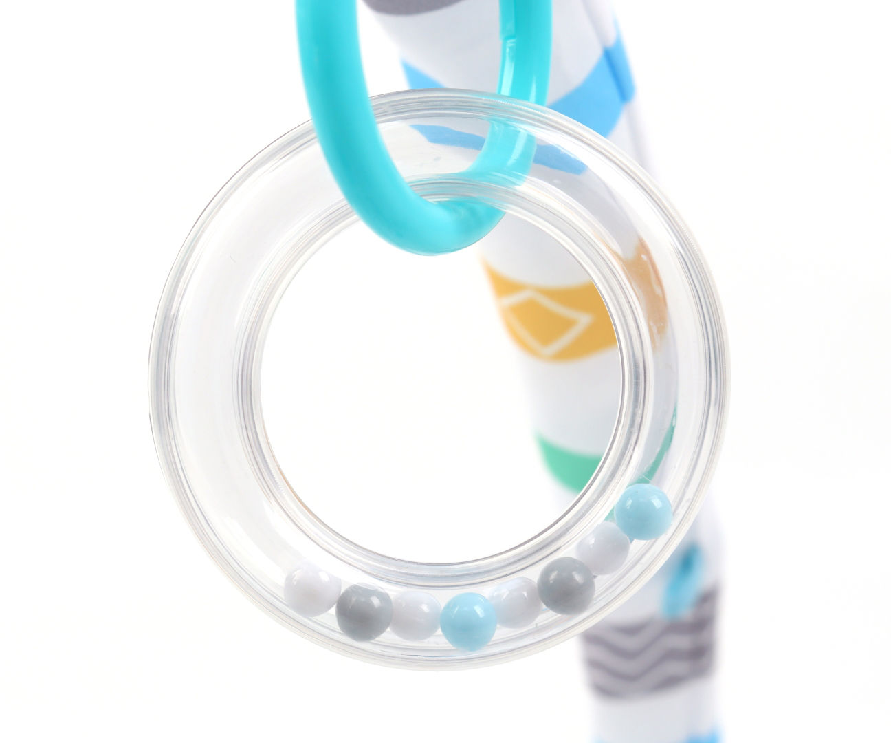 Rozłożone boki i dwa usztywniane pałąki pozwalają na zawieszenie zabawek w różnych konfiguracjach. Idealna opcja dla maluszków, które uczą się chwytać i obserwować.