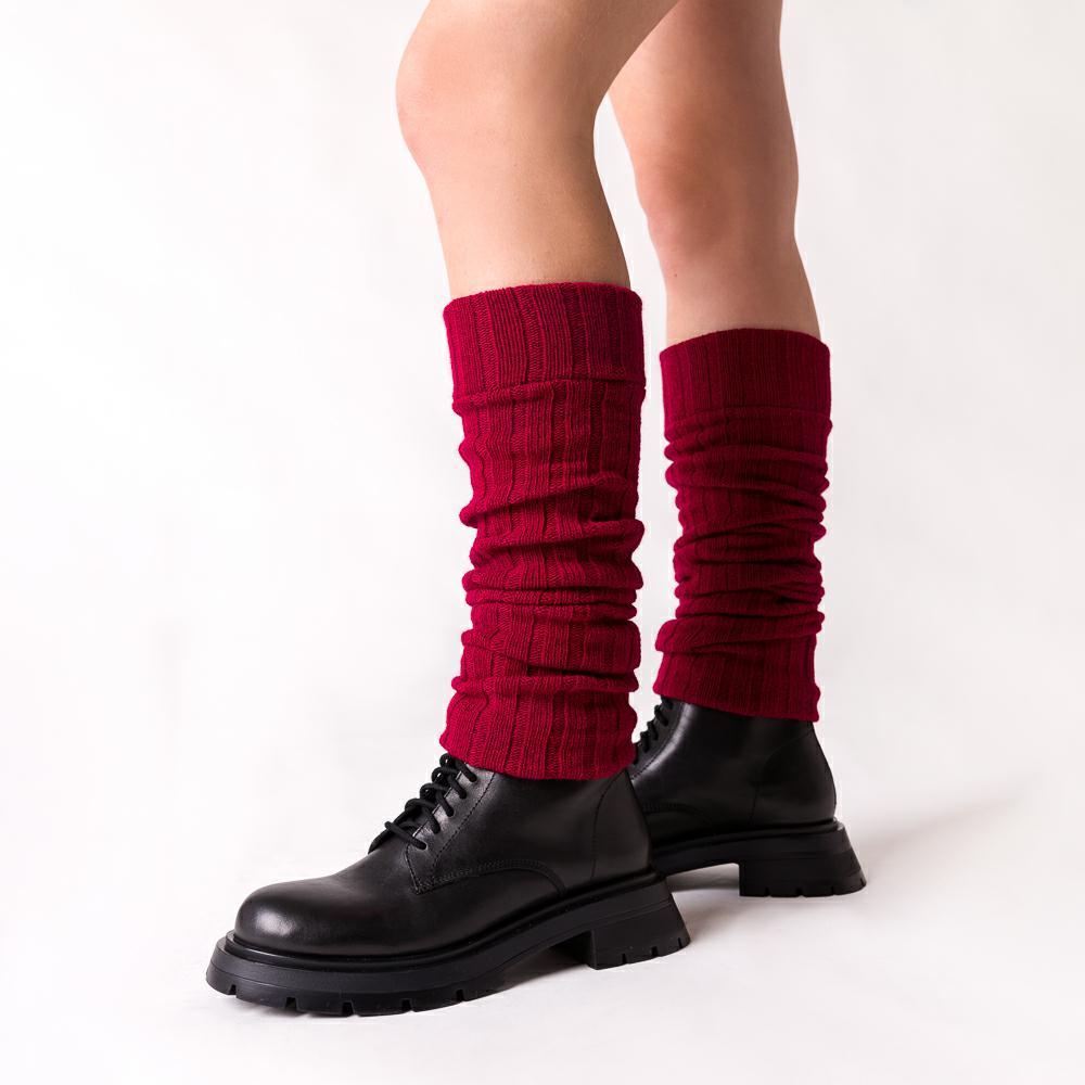 Getry damskie prążkowane z dodatkiem wełny Steven kolor bordowy